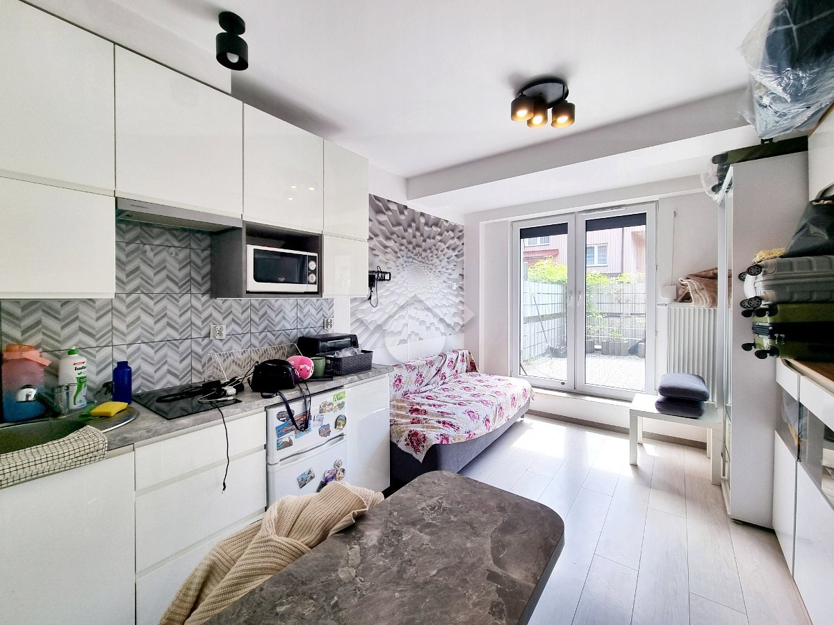 Nieruchomość: Przytulne mieszkanie o powierzchni 16 m2 z prywatnym ogrodem (ok. 15 m2) zlokalizowane na parterze odrestaurowanego budynku . Mieszkanie składa się z pokoju dziennego z aneksem kuchennym, łazienki z WC oraz przedpokoju. Ogrzewanie i ciepła woda z sieci centralnej. Budynek znajduje się w strefie bezpłatnego parkowania.
