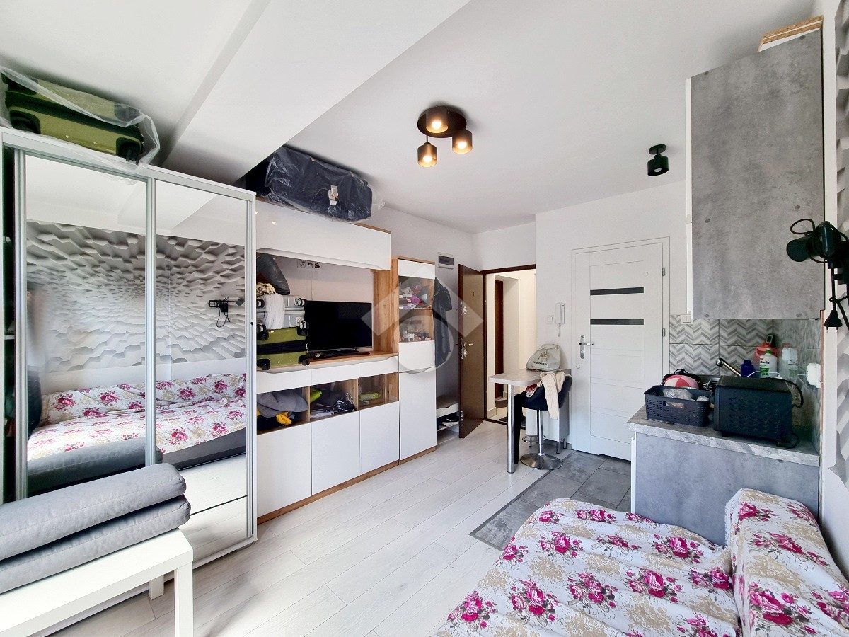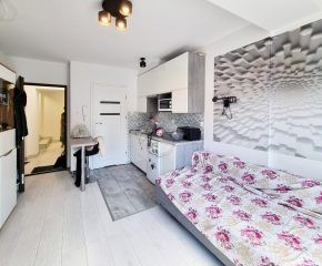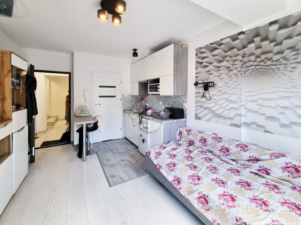 A cozy apartment with an area of 16 m² and a private garden (approx. 15 m²), located on the ground floor of a renovated building. The apartment consists of a living room with a kitchenette, a bathroom with a toilet, and a hallway. Heating and hot water come from the central municipal network. The building is located in a free parking zone.