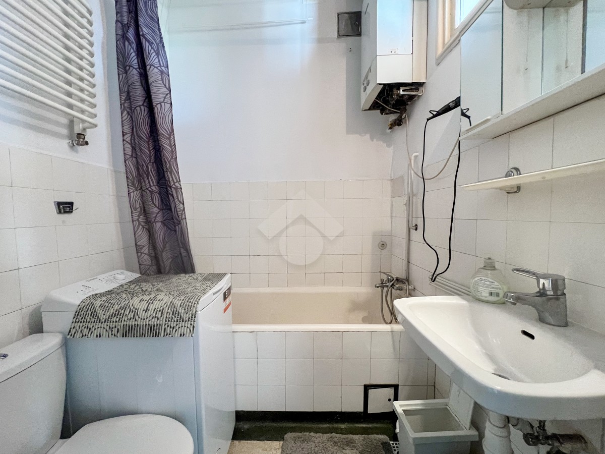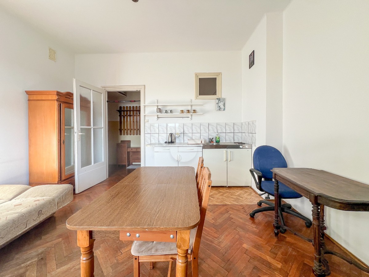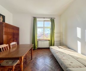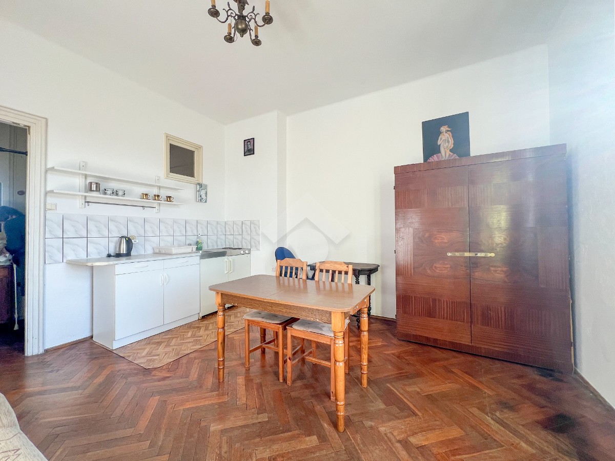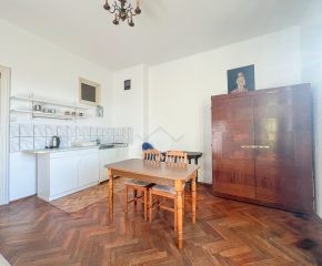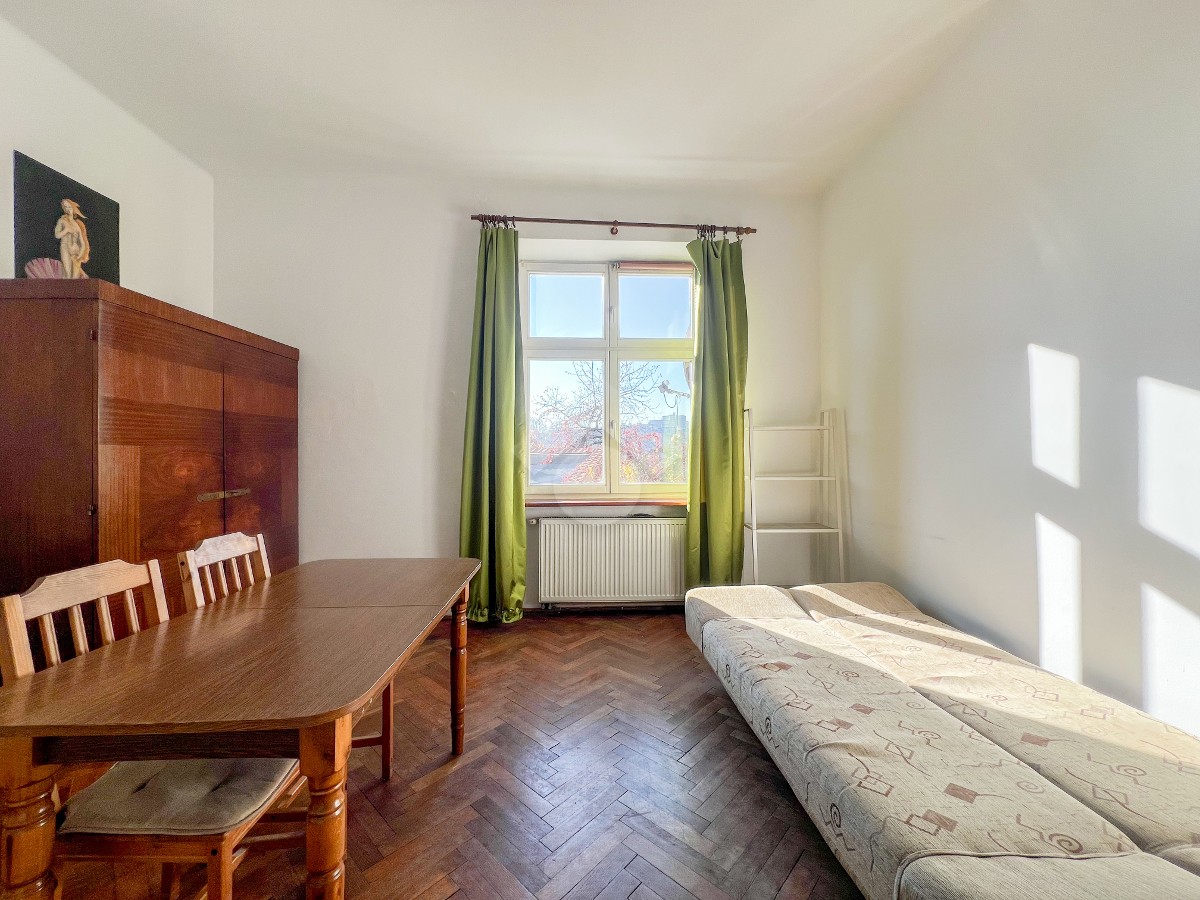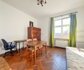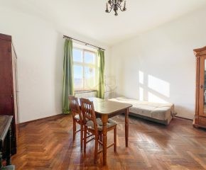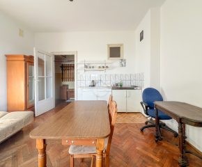 Property: One-room apartment – located on the first floor of a prewar tenement building overlooking the garden. It comprises a living room with a kitchenette, a hallway, and a bathroom with a toilet. It is heated by a gas-fired dual-fuel boiler.