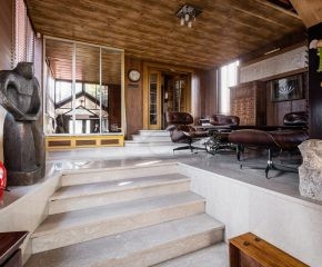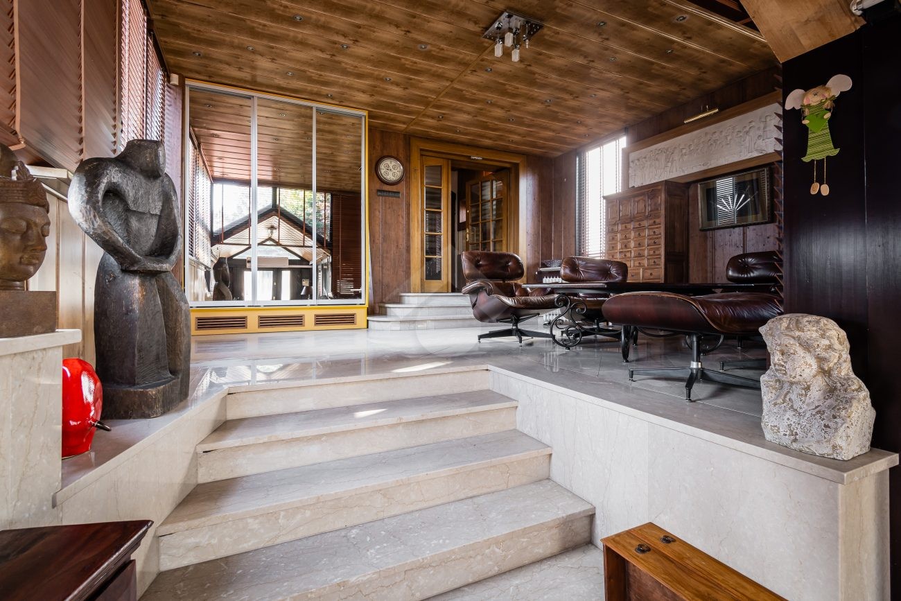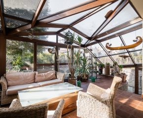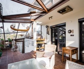 PARTER – hall połączony z pokojem, salon z kominkiem, osobna kuchnia, łazienka z WC, ogród zimowy do którego można wejść zarówno z poziomu parteru jak i z działki. Ogród wyposażony jest w klimatyzator zapewniający funkcje ogrzewania oraz chłodzenia pomieszczeń.