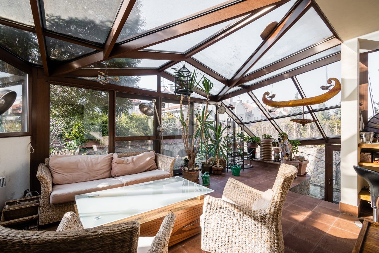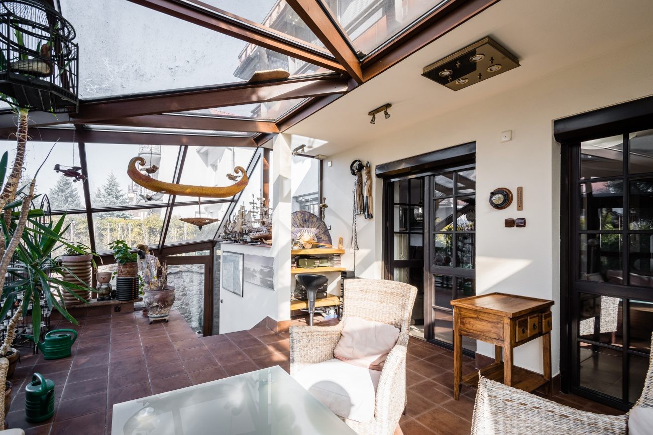 W oknach zamontowano rolety antywłamaniowe. Dom wykonany w stylu kolonialnym, co zapewnia niesamowity klimat. Duża ilość okien, przeszklony ogród zimowy zapewniają doskonałe doświetlenie pomieszczeń.