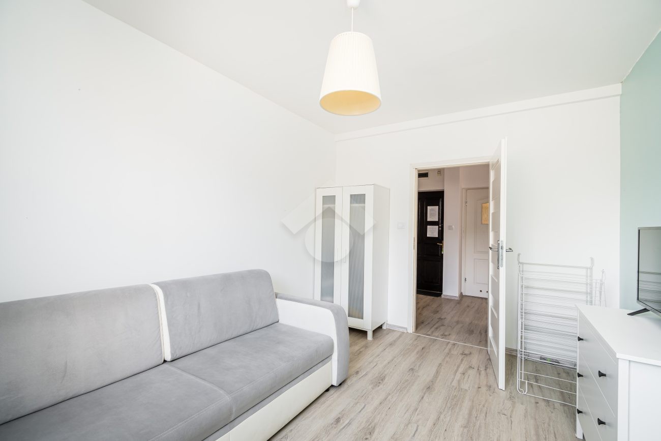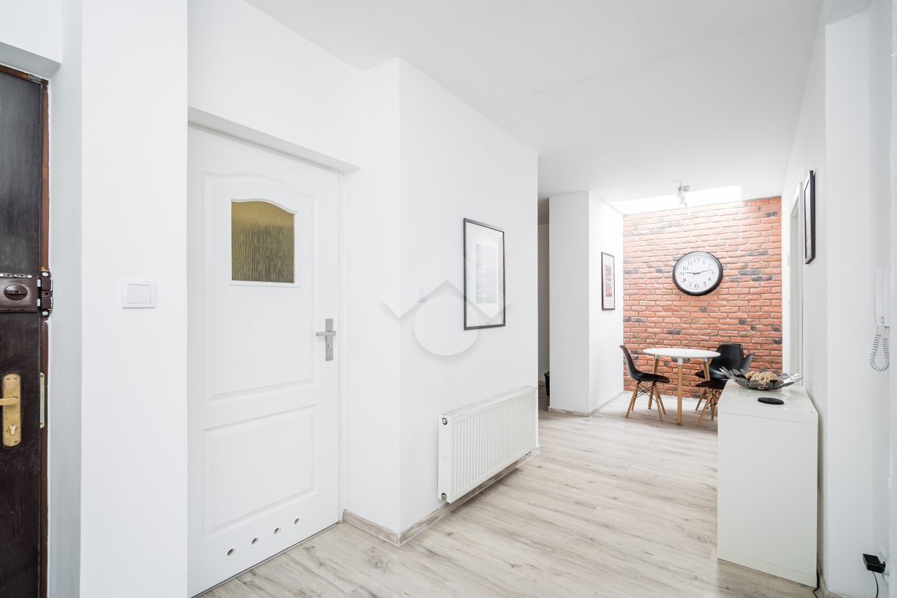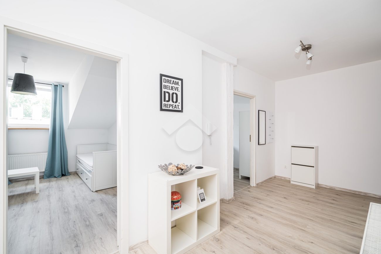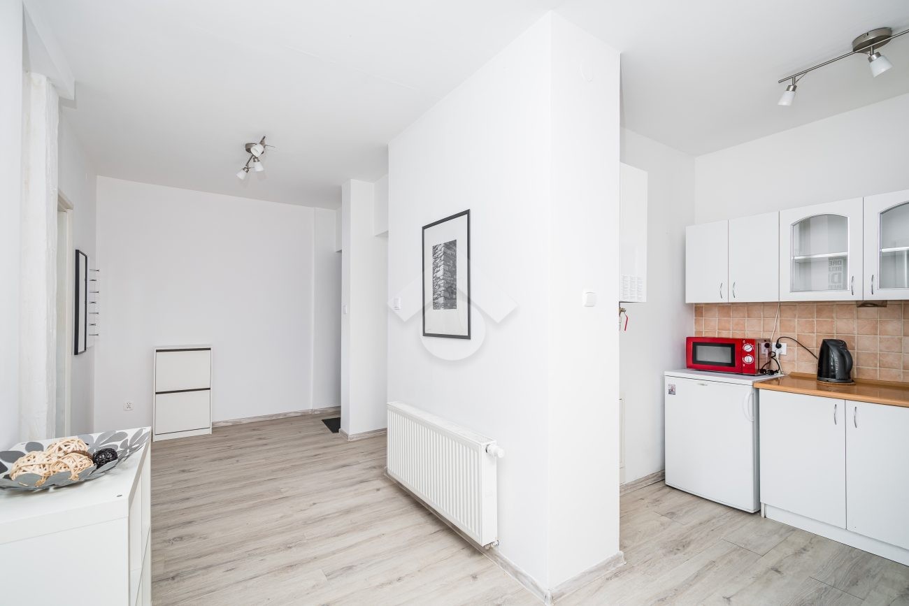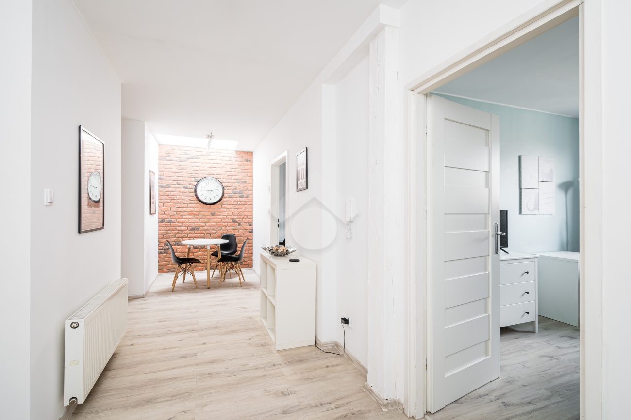 Property: A 50 m2 flat located on the third floor of a stylish tenement house with gas heating and a combi boiler. The property consists of an open-plan kitchen, two separate rooms, a bathroom with a toilet and a hall.
