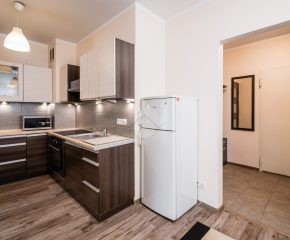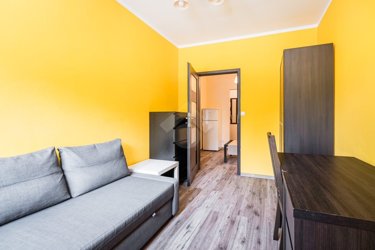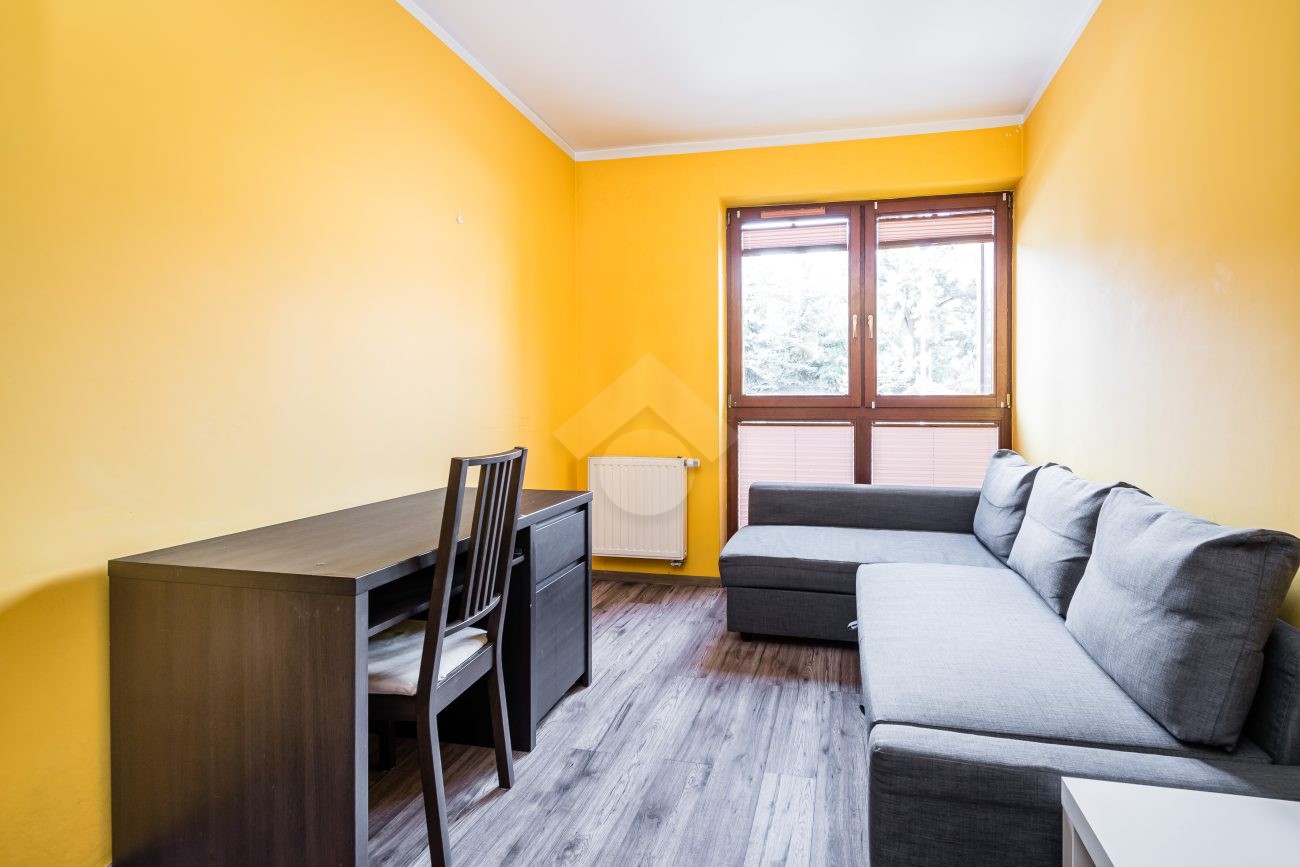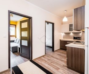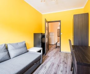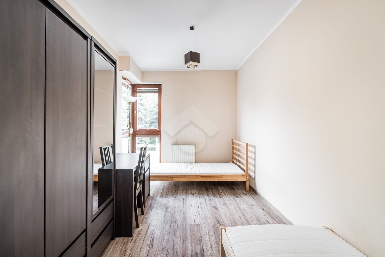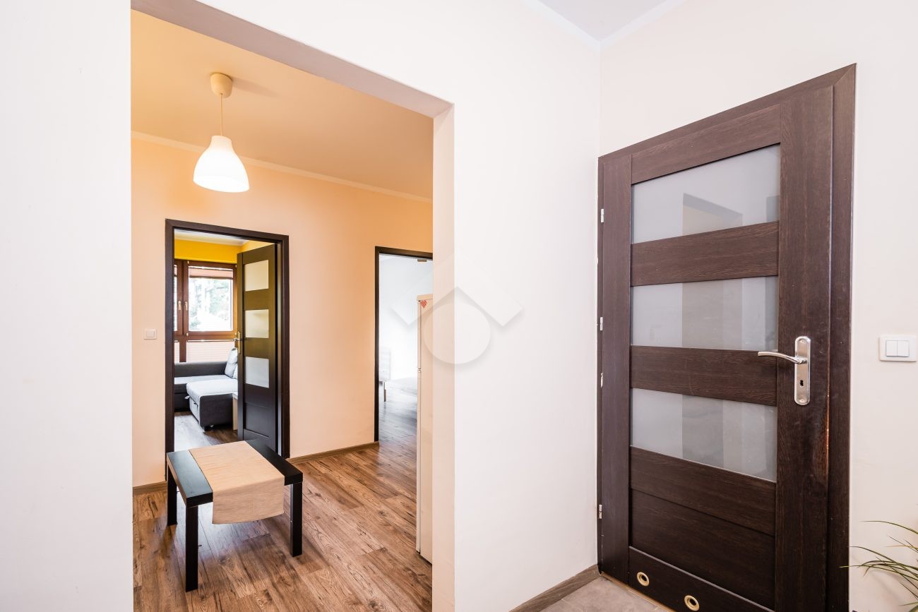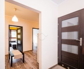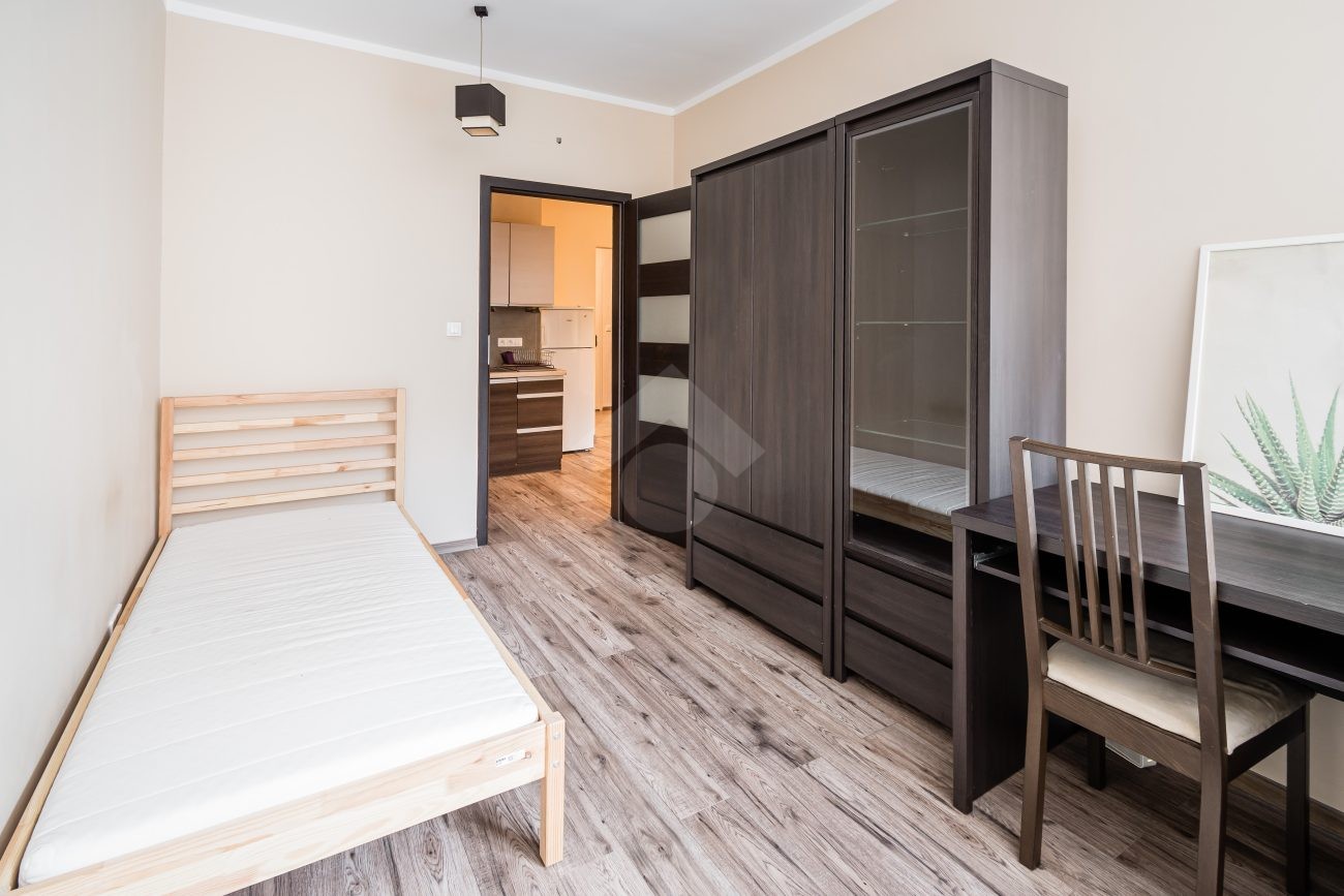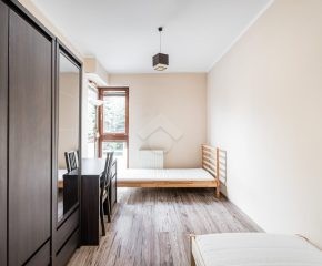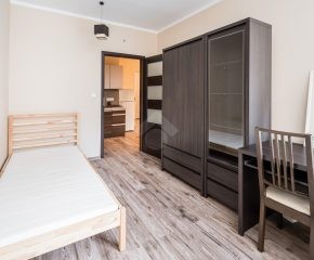 Nieruchomość jest w bardzo dobrym stanie. W przedpokoju znajduje się duża szafa z lustrem. W sypialniach znajdują się łóżka, biurka, kanapa oraz duża szafa. Osobna, zabudowana kuchnia, w pełni wyposażona w niezbędne sprzęty AGD tj. piekarnik, płytę elektryczną, okap, lodówkę, mikrofalówkę. W łazience znajduje się pralka, duży prysznic, umywalka, lustro oraz WC.
