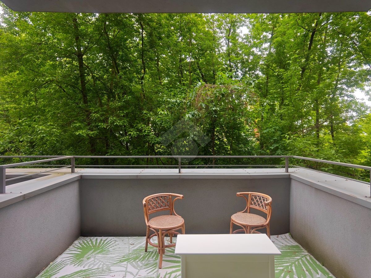 A modern apartment with an area of 43 m², located on a high ground floor in an apartment building constructed in 2020. The apartment has an eastern exposure. The property consists of a spacious living room with a kitchenette, a bedroom, a bathroom with a toilet, a hallway, and a large balcony.