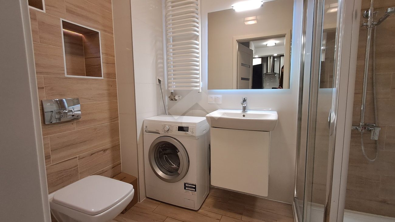 Stan mieszkania: Mieszkanie w stanie bardzo dobrym, w pełni wyposażone i gotowe do wprowadzenia się. Pokój dzienny wyposażony został w dużą sofę, stolik oraz tv. W sypialni znajduje się duże łózko. Zabudowa kuchenna na wymiar, wraz ze sprzętami AGD, w tym lodówka, zmywarka oraz płyta elektryczna i piekarnik. W łazience jest zabudowa prysznicowa, umywalka, pralka oraz WC.