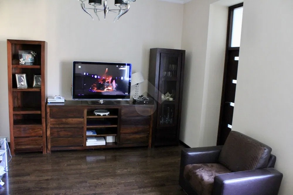 W salonie znajduje się również telewizor, duży stół jadalniany oraz kanapa narożna.