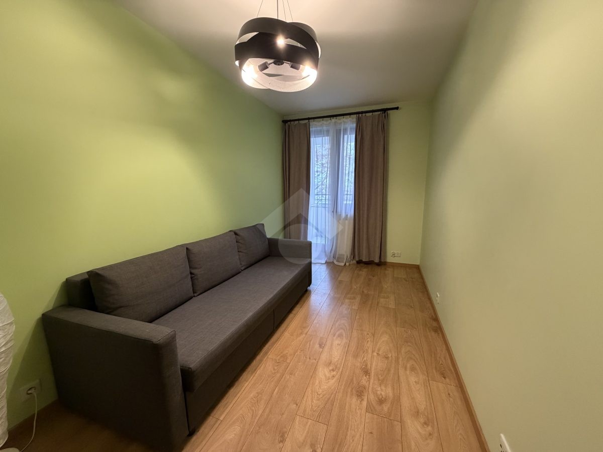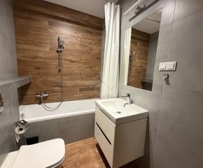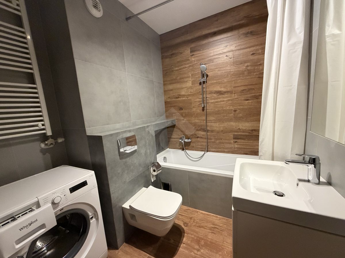 Lokal został wykończony w wysokim standardzie, jest w pełni umeblowany i gotowy do zamieszkania od zaraz. Mieszkanie składa się z komfortowego salonu z aneksem kuchennym, osobnej sypialni, łazienki oraz przedpokoju. Dużym atutem jest możliwość wyjścia na balkon zarówno z salonu, jak i z sypialni, co zapewnia dodatkową przestrzeń do wypoczynku i świetnie doświetla wnętrze.