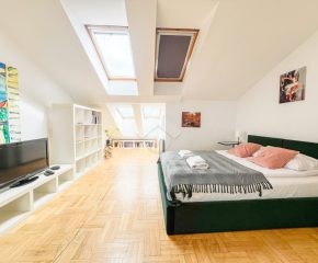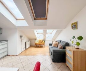 Nieruchomość: 2-pokojowe mieszkanie o powierzchni 48 m2, zlokalizowane na 4. piętrze w tradycyjnej kamienicy z windą. Nieruchomość składa się salonu z aneksem kuchennym, sypialni, przedpokoju oraz łazienki z WC. Mieszkanie jest umeblowane i wyposażone w sprzęty codziennego użytku. Ogrzewanie elektryczne.