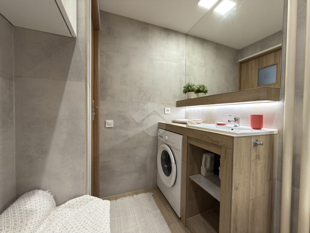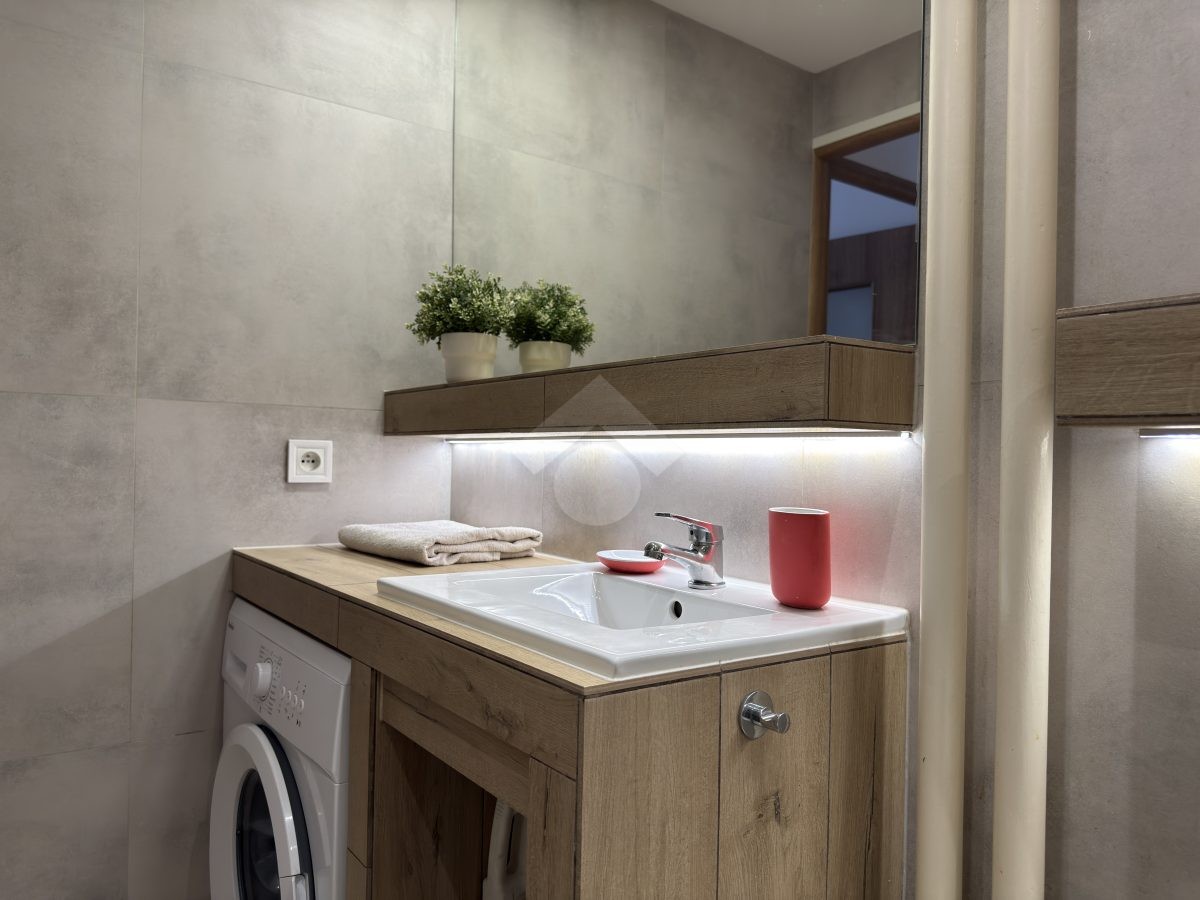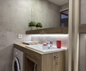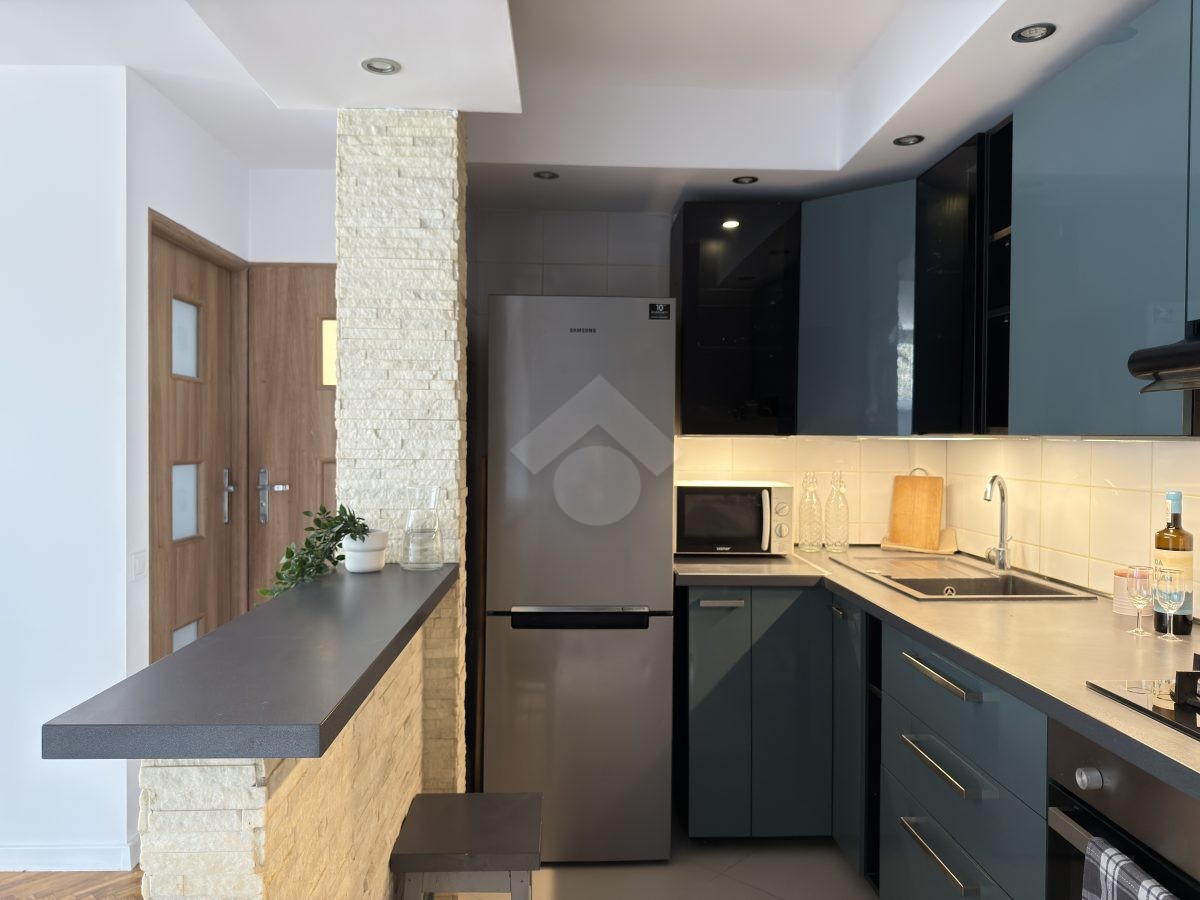 Mieszkanie w bardzo dobrym stanie, w pełni wyposażone i gotowe do zamieszkania. W kuchni płyta gazowa, okap, piekarnik i lodówka. Salon wyposażony w komfortowy narożnik, szafki oraz TV. W sypialni rozkładane łóżko, duża szafa, komoda oraz szafka nocna. W łazience umywalka, toaleta, duża narożna wanna oraz pralka.