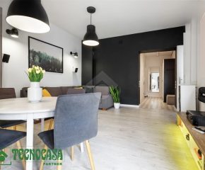Apartment condition: VERY GOOD – the apartment is decorated in a modern style, equipped with high-quality furniture and everyday appliances. The installations and windows have been replaced. The apartment also has a modern audio system and a remotely controlled projector for screening movies or TV shows. District heating is provided.