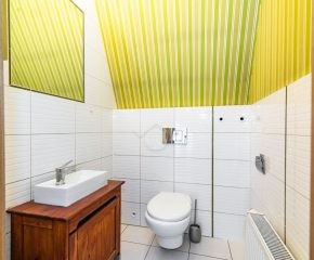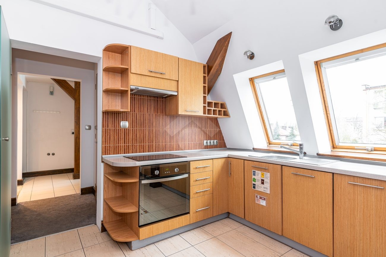 W lokalu znajduje się również osobna, jasna kuchnia oraz WC, co znacząco podnosi komfort codziennego użytkowania. Całość uzupełnia antresola, która nie tylko zwiększa powierzchnię użytkową, ale też nadaje wnętrzu nowoczesnego i bardziej „premium” charakteru. Dodatkowym atutem jest balkon – idealne miejsce na chwilę przerwy w pracy.