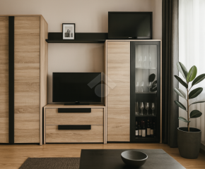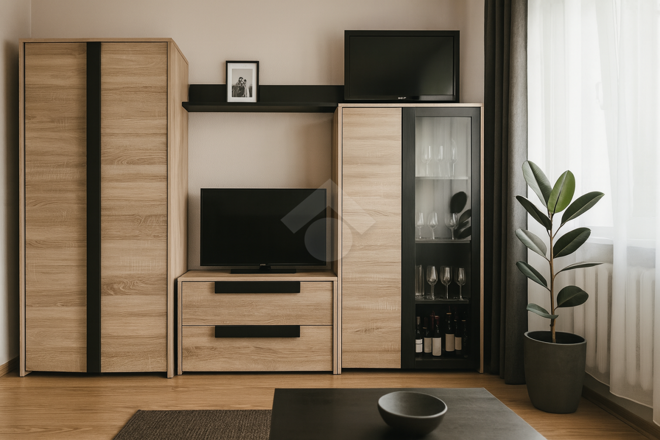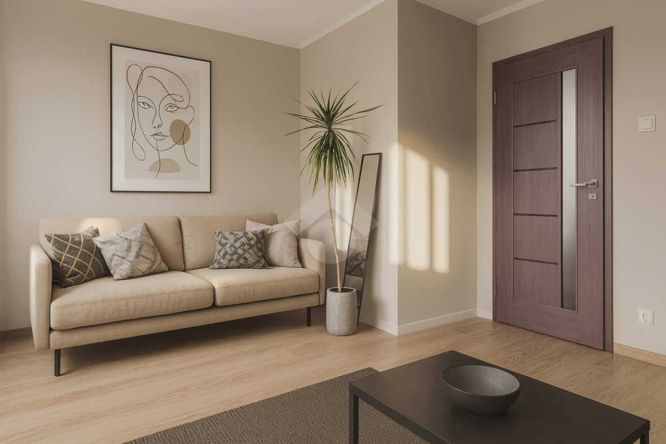 ✔ Przestronny salon w jasnych, naturalnych barwach, z miejscem na wygodną sofę i strefę relaksu,