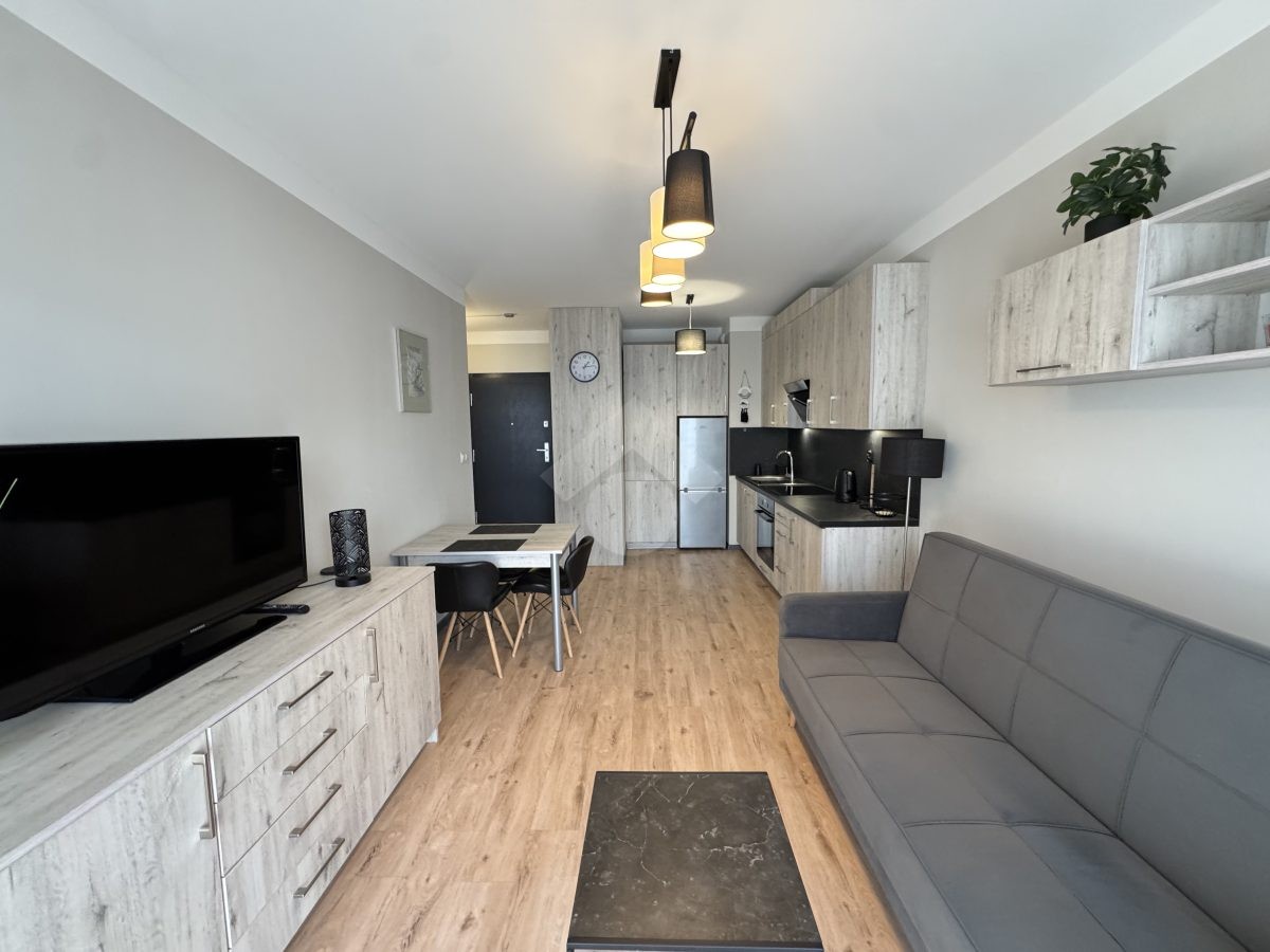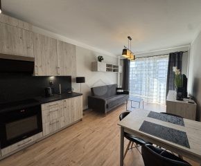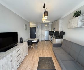 Stan nieruchomości: WYSOKI STANDARD. Duża ilość okien wprowadza ogrom naturalnego światła, które podkreśla otwartość i minimalizm całego mieszkania. Kuchnia wyposażona jest w meble w zabudowie, lodówko-zamrażarkę, piekarnik, płytę indukcyjną oraz zmywarkę. W łazience znajduje się prysznic z deszczownicą, pralka, suszarka na ubrania oraz umywalka. Sypialnia wyposażona w kanapę rozkładaną oraz pojemne szafy. Ogrzewanie oraz ciepła woda realizowane z sieci miejskiej.