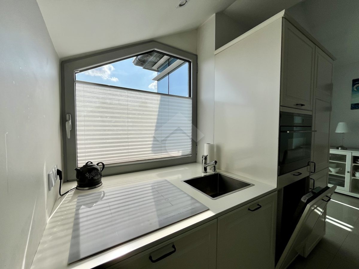 Stan nieruchomości: Bardzo dobry. Ogrzewanie centralne gazowe. W kuchni i łazience ogrzewanie podłogowe. Mieszkanie jest jasne i dobrze doświetlone dzięki dużym oknom i przeszkleniu w salonie. Dodatkowo wyposażone w klimatyzację kanałową. Lokal został wyposażony i gotowy do codziennego użytku. W kuchni: lodówko-zamrażarka, zmywarka, piekarnik, płyta elektryczna. W łazience: wanna i pralka.