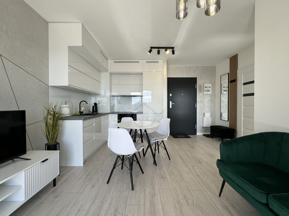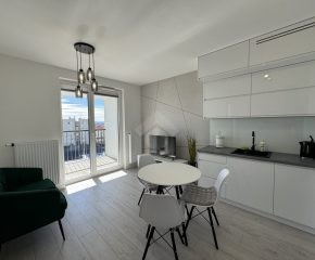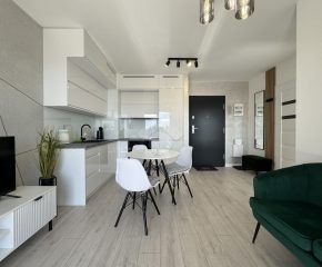 Stan nieruchomości: BARDZO DOBRY. Duża ilość okien wprowadza ogrom naturalnego światła. Kuchnia wyposażona jest w zabudowaną lodówko-zamrażarkę, piekarnik, płytę indukcyjną  oraz zmywarkę. W salonie sofa, stół z krzesłami, szafka pod tv i telewizor. Sypialnia wyposażona w łóżko dwuosobowe oraz pojemną szafę  W łazience znajduje się prysznic, umywalka, pralka oraz blat, na którym można prasować. Ogrzewanie oraz ciepła woda realizowane z sieci miejskiej.