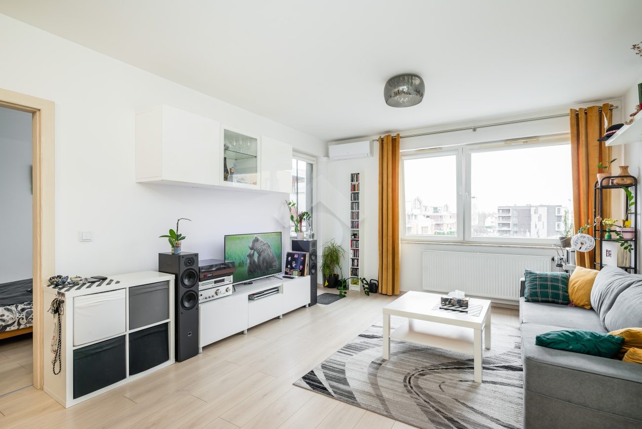 Stan nieruchomości: BARDZO DOBRY. Ogrzewanie oraz ciepła woda realizowane za pomocą sieci miejskiej. Mieszkanie jest w pełni wyposażone i gotowe do zamieszkania. Kuchnia została zabudowana nowoczesnymi meblami i sprzętami AGD – do dyspozycji przyszłych mieszkańców są: lodówko-zamrażarka, płyta indukcyjna, piekarnik, zmywarka oraz mikrofalówka. W łazience znajduje się prysznic, umywalka oraz pralka. Sypialnia została umeblowana w łóżko oraz pojemną szafę. W salonie natomiast znajduje się między innymi wygodna sofa, stolik RTV oraz regał na książki. Dodatkowo mieszkanie zostało wyposażone w klimatyzację.