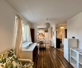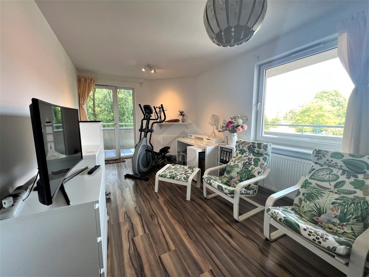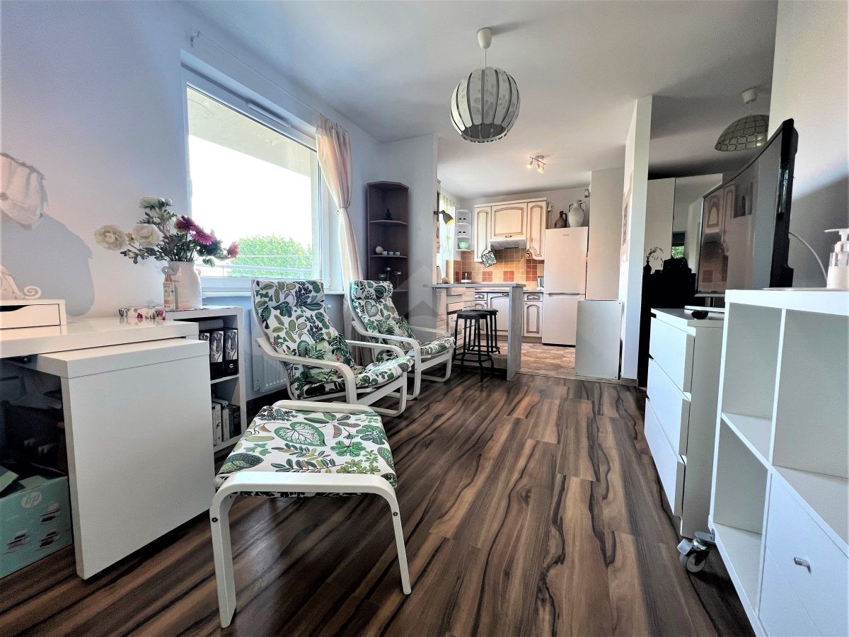 Nieruchomość: Proponujemy Państwu do wynajęcia mieszkanie o powierzchni 45,68 m², znajdujące się na pierwszym piętrze w pięciopiętrowym budynku z 2011 roku. Nieruchomość składa się z salonu, półotwartej kuchni, oddzielnej sypialni, łazienki z WC, przedpokoju oraz obszernego balkonu, na który można wyjść bezpośrednio z salonu. Do największych zalet nieruchomości należą: funkcjonalny układ mieszkania, wysoki standard wykończenia oraz duża ilość mebli z miejscem do przechowywania.