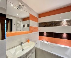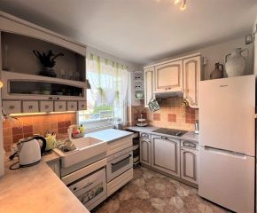 Nieruchomość jest w pełni wyposażona i gotowa do codziennego użytku. W kuchni znajdują się: lodówko-zamrażarka, czajnik elektryczny, piekarnik, płyta elektryczna oraz zmywarka. W łazience: wanna oraz pralka. Ogrzewanie i ciepła woda z sieci miejskiej.