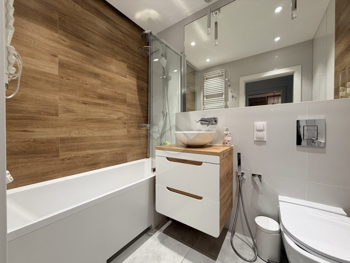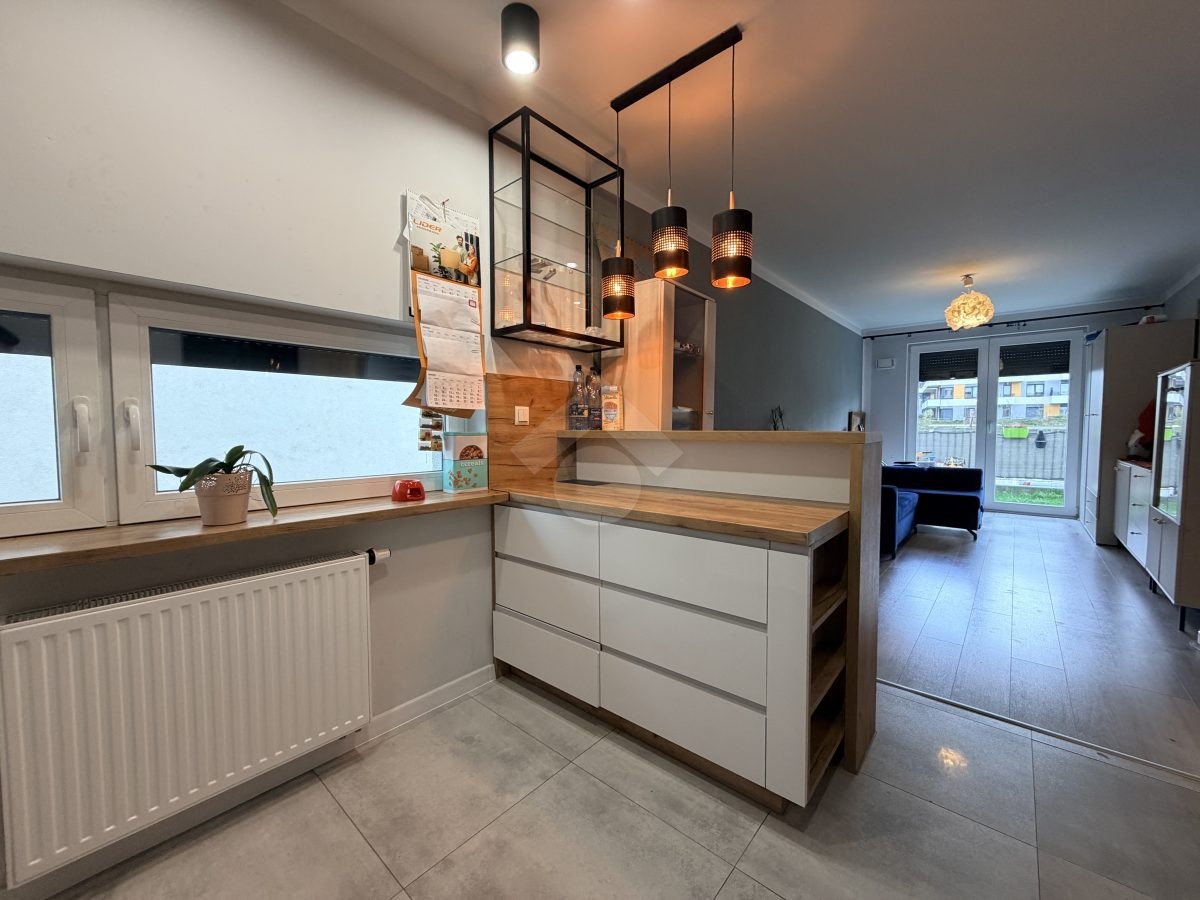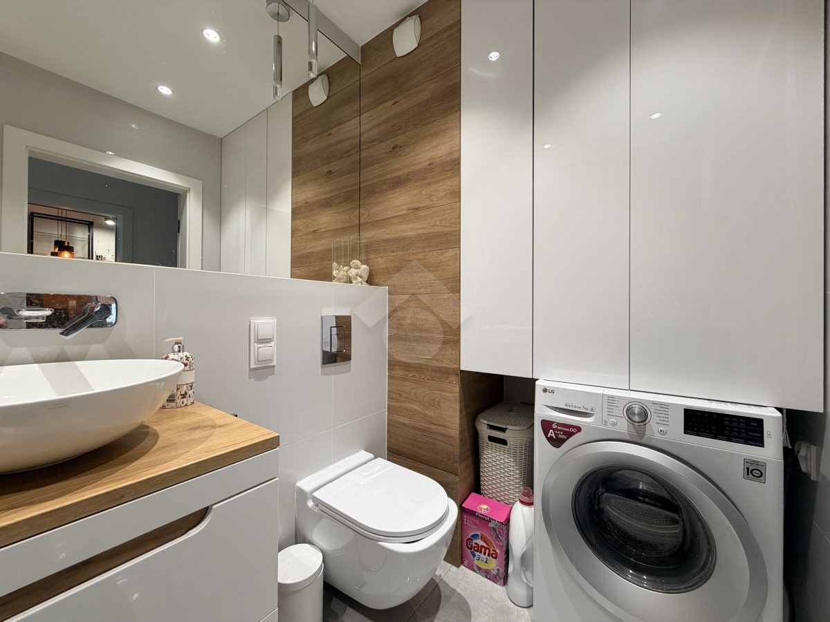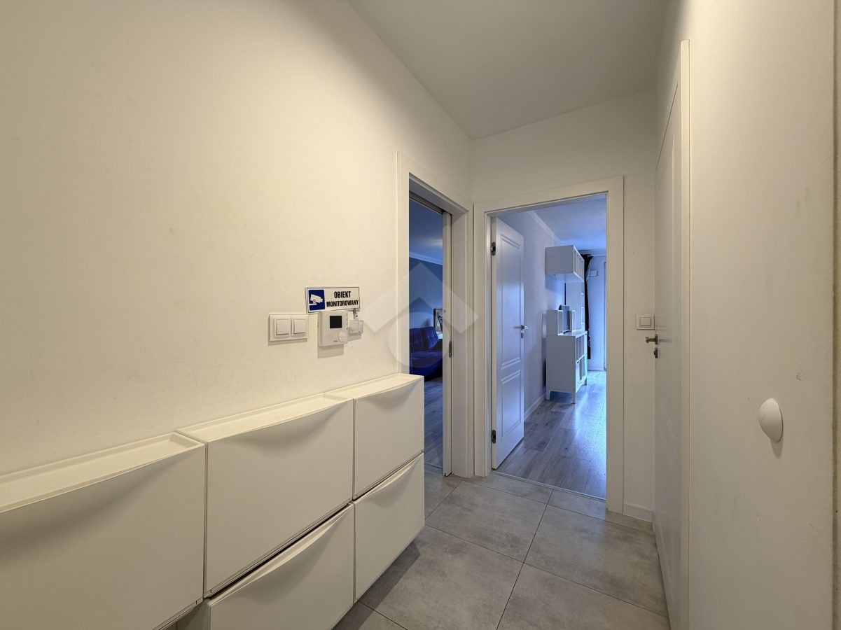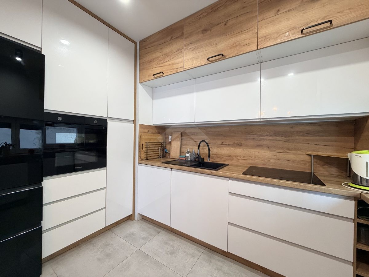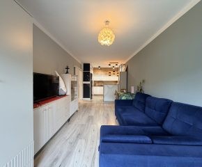 Stan nieruchomości: Bardzo dobry. Duża ilość okien wprowadza ogrom naturalnego światła. Kuchnia wyposażona jest w zabudowaną lodówko-zamrażarkę, piekarnik, płytę indukcyjną oraz zmywarkę. W salonie szafa, komoda oraz witryna. Sypialnia wyposażona w łóżko dwuosobowe oraz pojemną szafę. W łazience znajduje się kabina prysznicowa, umywalka oraz pralka. Przedpokój zabudowany szafami na wymiar. Ogrzewanie oraz ciepła woda realizowane z sieci miejskiej.