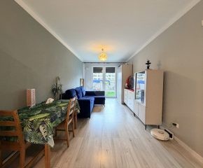Nieruchomość: Proponujemy Państwu do wynajęcia apartament o powierzchni ok. 54,47 m², znajdujący się na parterze w pięciopiętrowym budynku z windą z 2018 roku. Nieruchomość składa się z oddzielnej sypialni, przestronnego salonu z aneksem kuchennym, łazienki z WC oraz przedpokoju. Do mieszkania przynależy ogródek o powierzchni ok. 25m², na który istnieje możliwość wyjścia bezpośrednio z salonu oraz sypialni. Dodatkowo do mieszkania przynależy miejsce parkingowe w hali garażowej za dodatkową opłatą 300 zł/miesiąc.