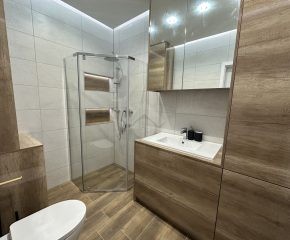 Stan nieruchomości: Bardzo Dobry. Ogrzewanie mieszkania piecykiem gazowym dwufunkcyjnym. Mieszkanie w pełni wyposażone i dostosowane do codziennego użytku. W kuchni: lodówko-zamrażarka, zmywarka, piekarnik, płyta elektryczna; w łazience prysznic, pralka.