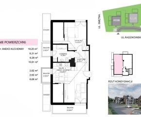 Komunikacja: Dodatkową zaletą jest rozbudowana sieć połączeń komunikacyjnych z innymi częściami miasta. Odległość do najbliższego przystanku autobusowego ,,Katowicka” wynosi ok 400m (linie 238, 120, 268, 288).