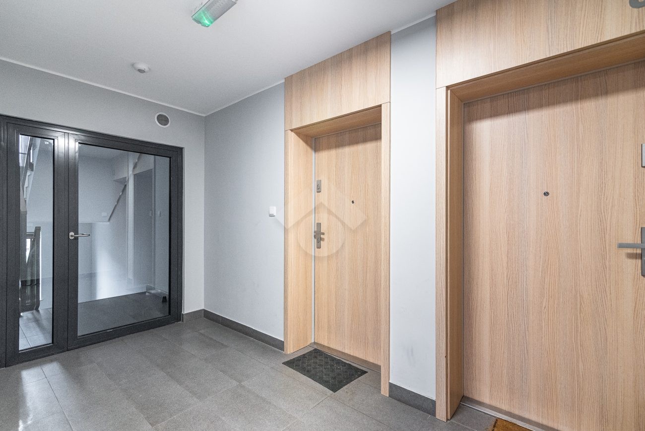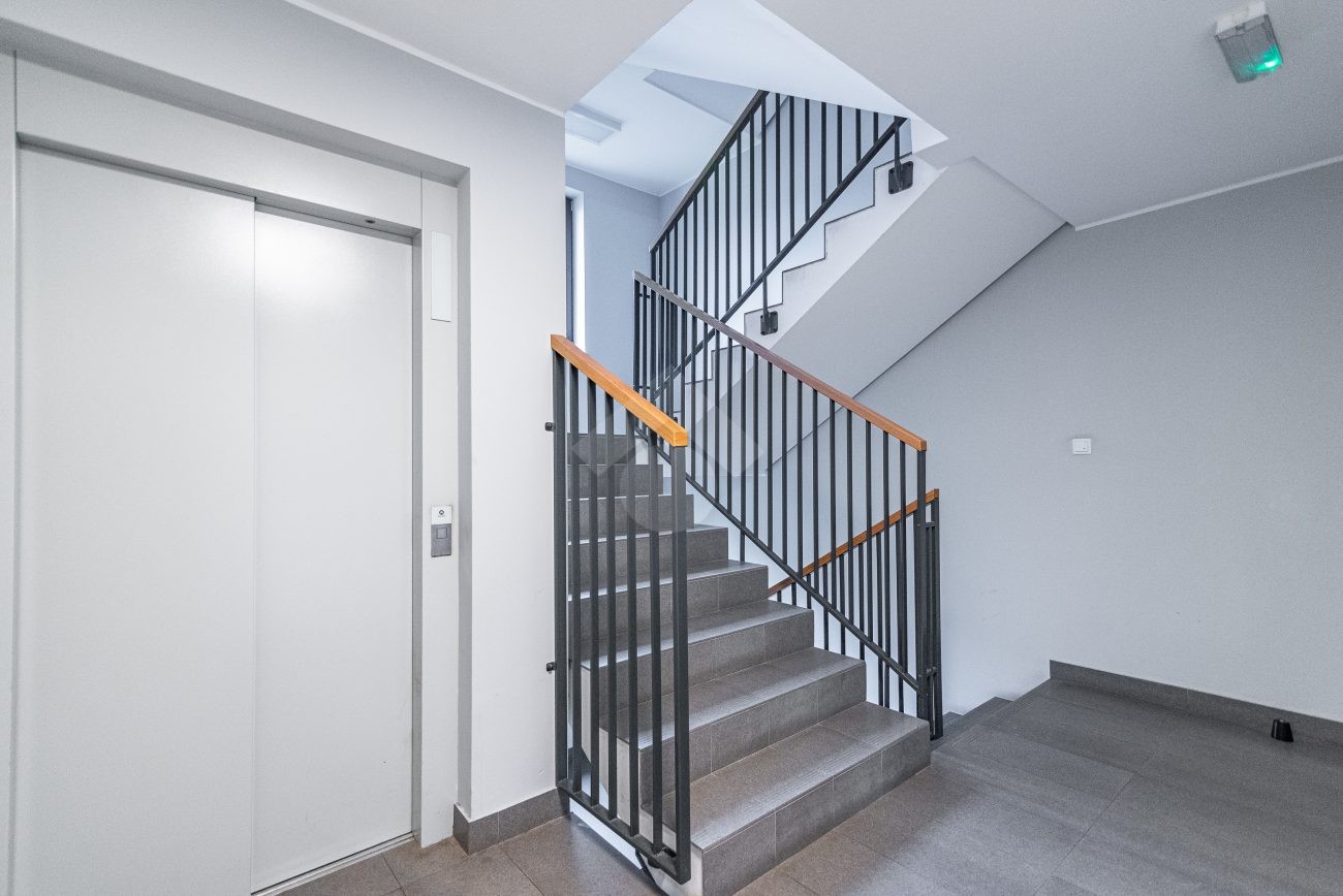 Stan budynku: Nieruchomość mieści się na zamkniętym osiedlu w pięciopiętrowym budynku z windą wybudowanym w 2019 r. Jest to budynek w kształcie prostej bryły wykonany z dbałością o każdy szczegół, prezentujący nienaganną elegancję. Dodatkowo przy wejściu do budynku znajduje się domofon.