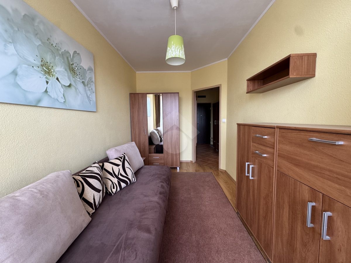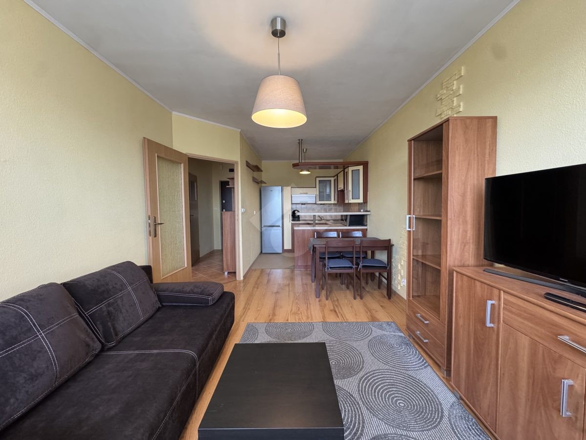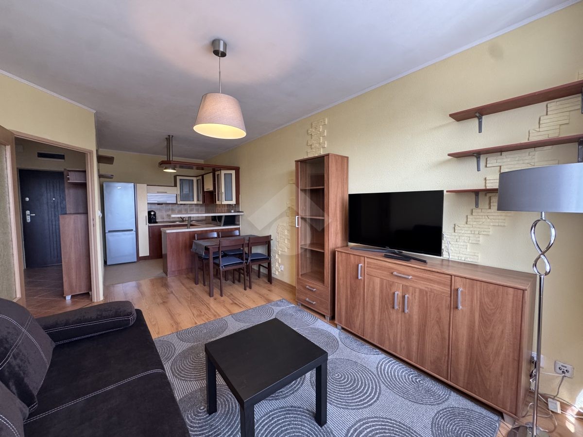 Stan nieruchomości: DOBRY – Ogrzewanie oraz ciepła woda realizowane z sieci miejskiej. W salonie rozkładana sofa, witryna, komoda, stół z krzesłami oraz telewizor. Kuchnia wyposażona w lodówko – zamrażarkę, płytę indukcyjną, piekarnik, mikrofalówkę oraz ekspres do kawy. W łazience wanna, umywalka oraz pralka, a w przedpokoju obszerne szafy. Pokój wyposażony w łóżko, szafę oraz komodę.