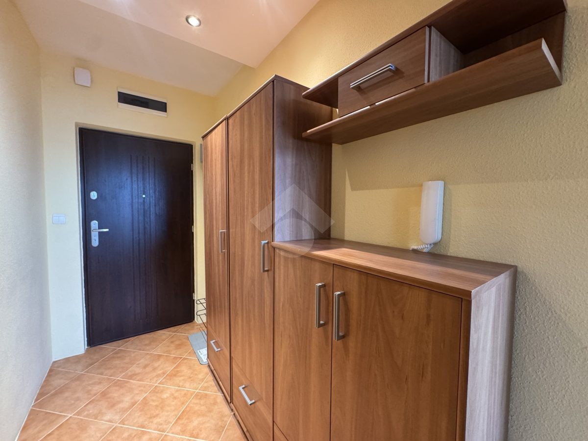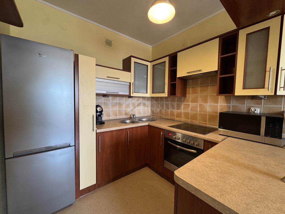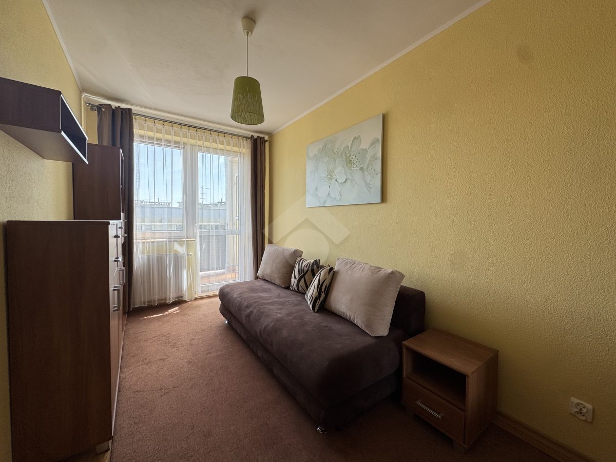 Stan nieruchomości: DOBRY – Ogrzewanie oraz ciepła woda realizowane z sieci miejskiej. W salonie rozkładana sofa, witryna, komoda, stół z krzesłami oraz telewizor. Kuchnia wyposażona w lodówko – zamrażarkę, płytę indukcyjną, piekarnik, mikrofalówkę oraz ekspres do kawy. W łazience wanna, umywalka oraz pralka, a w przedpokoju obszerne szafy. Pokój wyposażony w łóżko, szafę oraz komodę.