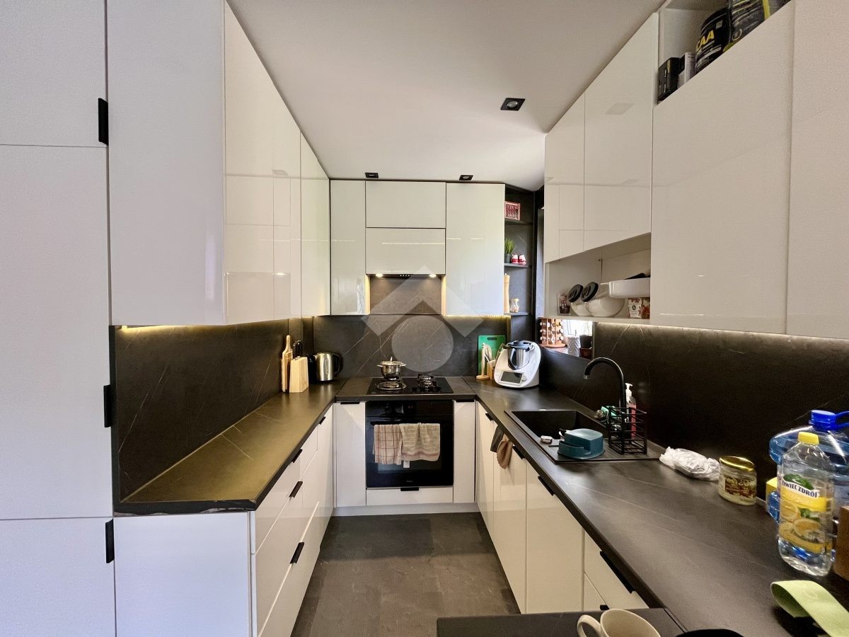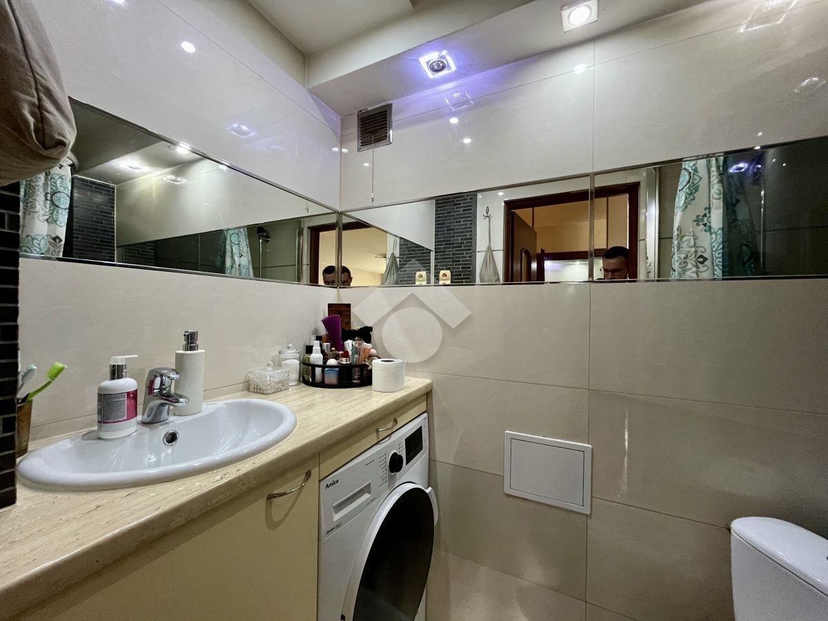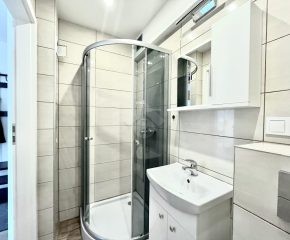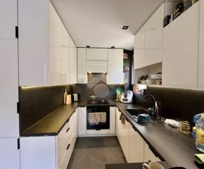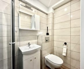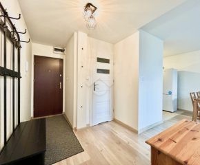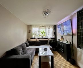 Condition of the apartment: Good – The apartment is maintained in very good condition. The property has undergone a partial renovation with the replacement of installations, and the whole has been heavily refreshed. Currently it is in constant use. There are possibilities to rearrange the rooms, for example, into 3 separate bedrooms and a bright kitchen with a window. The apartment is equipped with the necessary household appliances such as a washing machine, refrigerator and dishwasher, as well as basic furniture, such as a folding corner sofa in the living room with a sleeping function and a bed in the bedroom. In addition, there is an electric fireplace with heating in the living room.