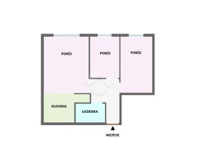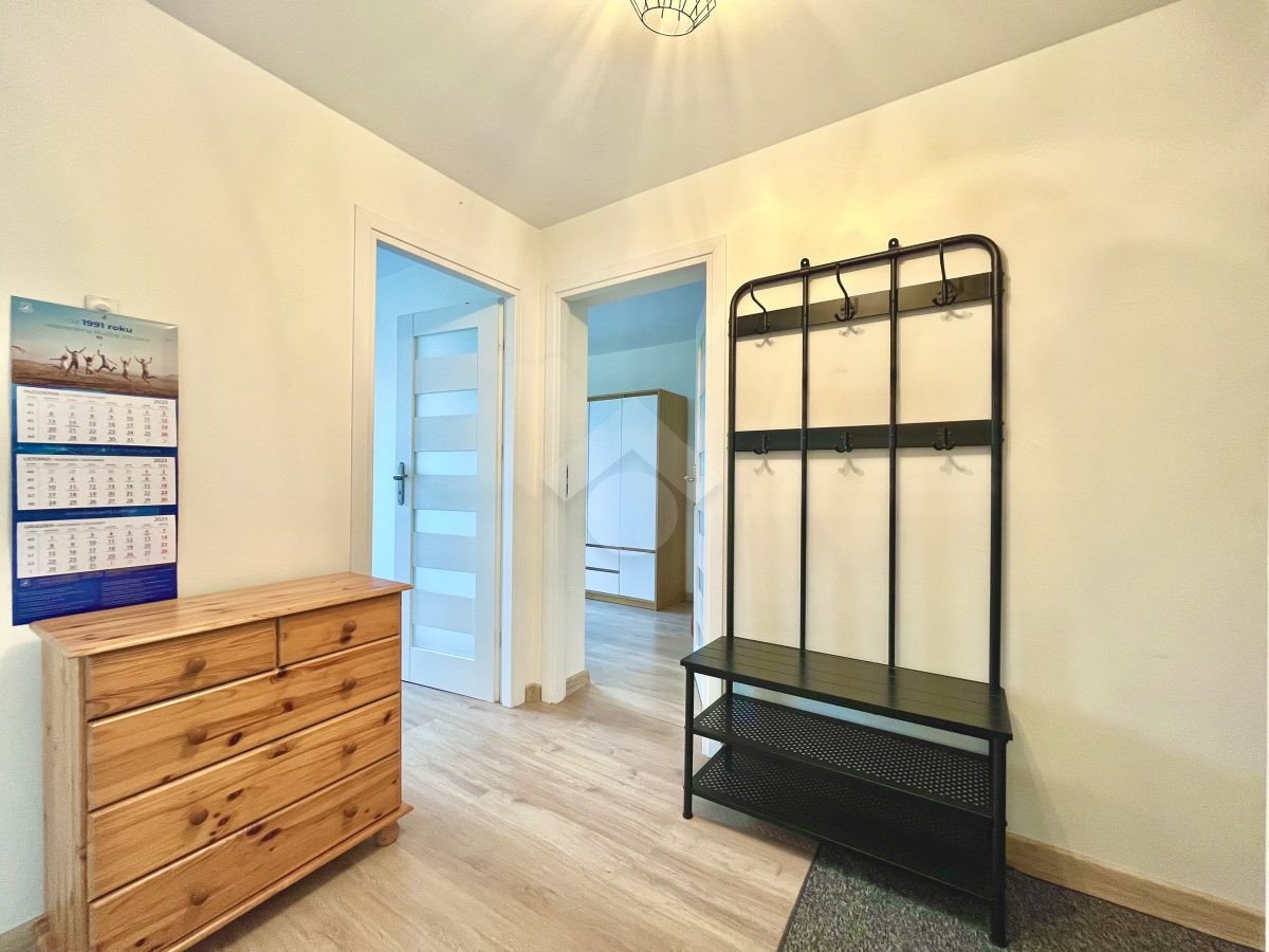 Property: Apartment with an area of 48.5 m2 located on the third floor of a well-kept building from the ’60s built of brick. The apartment consists of two separate bedrooms, living room with open kitchen and window, dressing room, bathroom with toilet and hall. The apartment includes a basement. Heating and hot water from the municipal network.