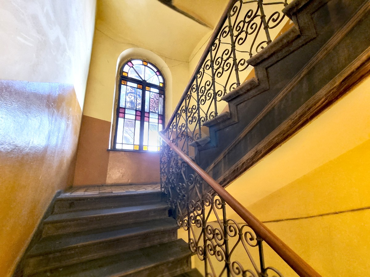 Stan budynku: Nieruchomość mieszcząca się w tradycyjnej kamienicy z zadbaną klatką schodową.