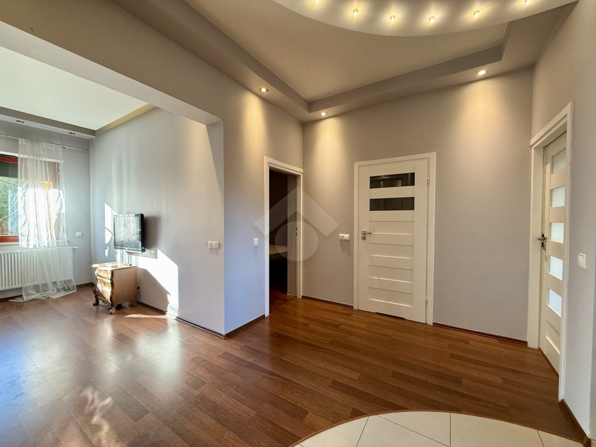 Stan nieruchomości: DOBRY – Ogrzewanie i ciepła woda realizowane dzięki piecykowi gazowemu. Na wyposażeniu między innymi: wanna, lodówko-zamrażarka, zmywarka, płyta gazowa, piekarnik, pralka, dwuosobowe łóżko, dwie rozkładane kanapy, szafki, pojemne szafy, tv, komody, rolety anty-włamaniowe.