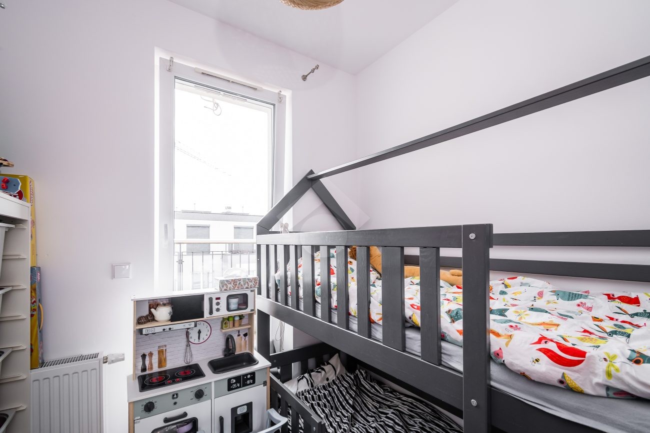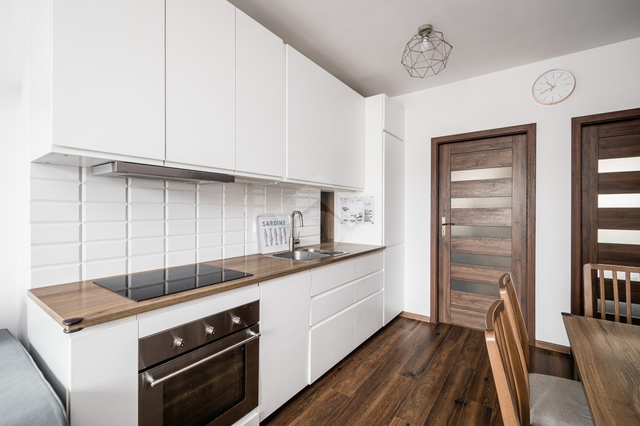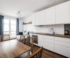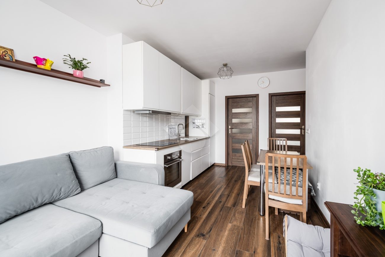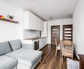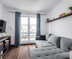 Stan nieruchomości: Bardzo dobry. Ogrzewanie oraz ciepła woda realizowane z sieci miejskiej. Na podłodze w salonie oraz pokojach znajdują się panele, natomiast w łazience oraz przedpokoju płytki. Kuchnia wyposażona jest w lodówko-zamrażarkę, zmywarkę, płytę indukcyjną i piekarnik. W jednej z sypialni znajduje się dwuosobowe łóżko oraz regał w zabudowie. W łazience znajdują się: wanna, umywalka, pralka oraz funkcjonalne szafki.