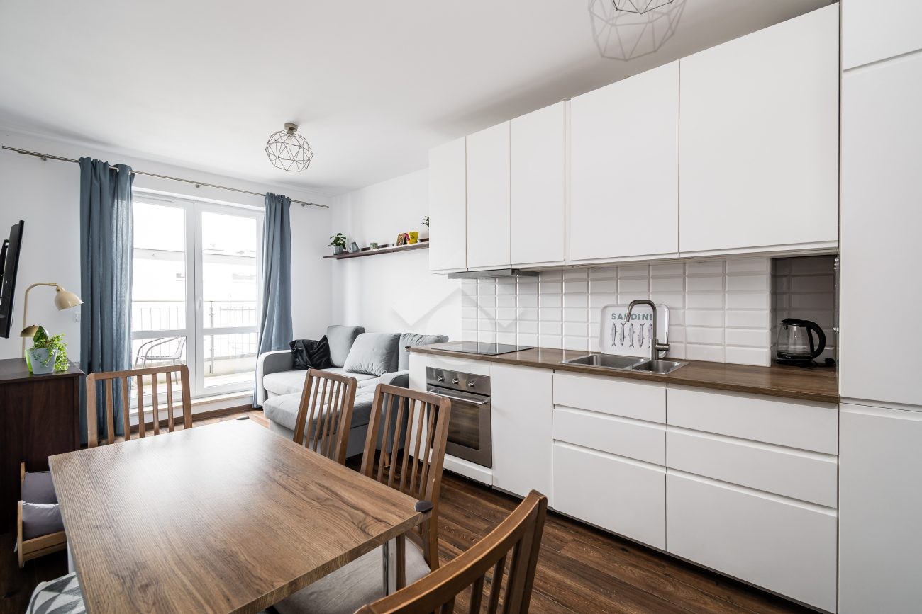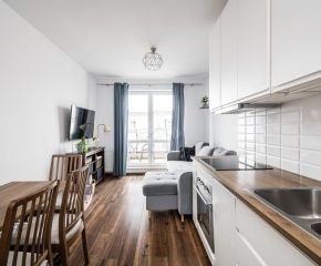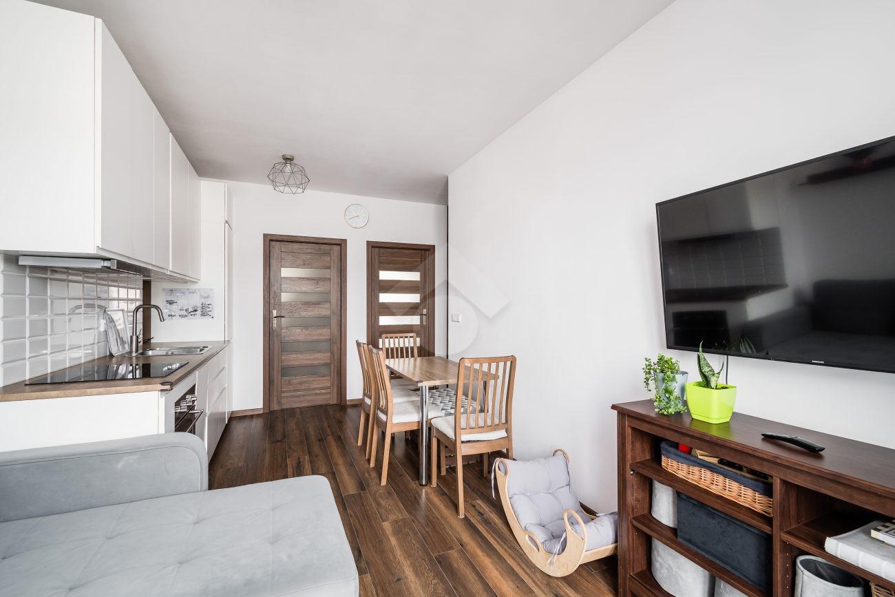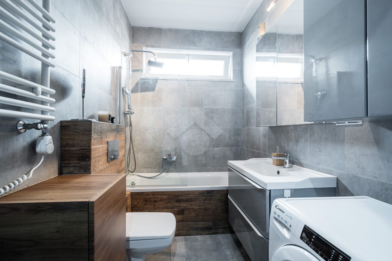 Stan nieruchomości: Bardzo dobry. Ogrzewanie oraz ciepła woda realizowane z sieci miejskiej. Na podłodze w salonie oraz pokojach znajdują się panele, natomiast w łazience oraz przedpokoju płytki. Kuchnia wyposażona jest w lodówko-zamrażarkę, zmywarkę, płytę indukcyjną i piekarnik. W jednej z sypialni znajduje się dwuosobowe łóżko oraz regał w zabudowie. W łazience znajdują się: wanna, umywalka, pralka oraz funkcjonalne szafki.