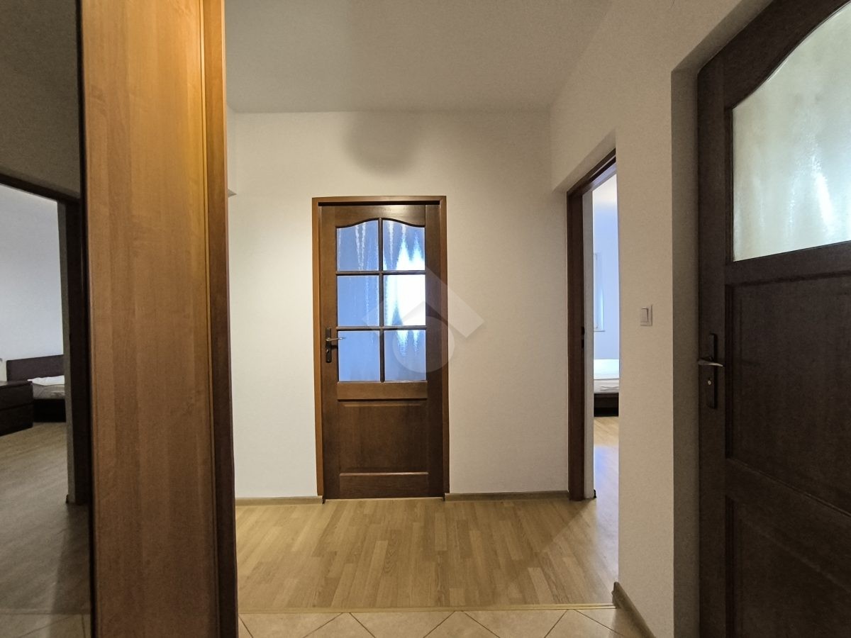 Stan nieruchomości: DOBRY. Duża ilość okien wprowadza ogrom naturalnego światła. Kuchnia wyposażona jest w zabudowaną lodówko-zamrażarkę, piekarnik, płytę grzewczą oraz zmywarkę. W salonie rozkładana sofa oraz stół z krzesłami. Sypialnia wyposażona w łóżko dwuosobowe, pojemną szafę oraz szafkę nocną, a druga sypialnia pusta. W łazience znajduje się kabina prysznicowa, umywalka oraz pralka, a w przedpokoju szafa w zabudowie.