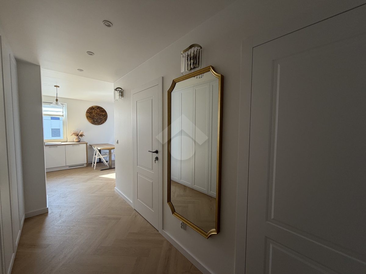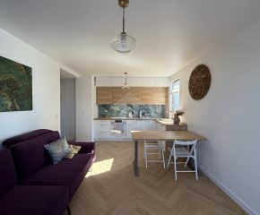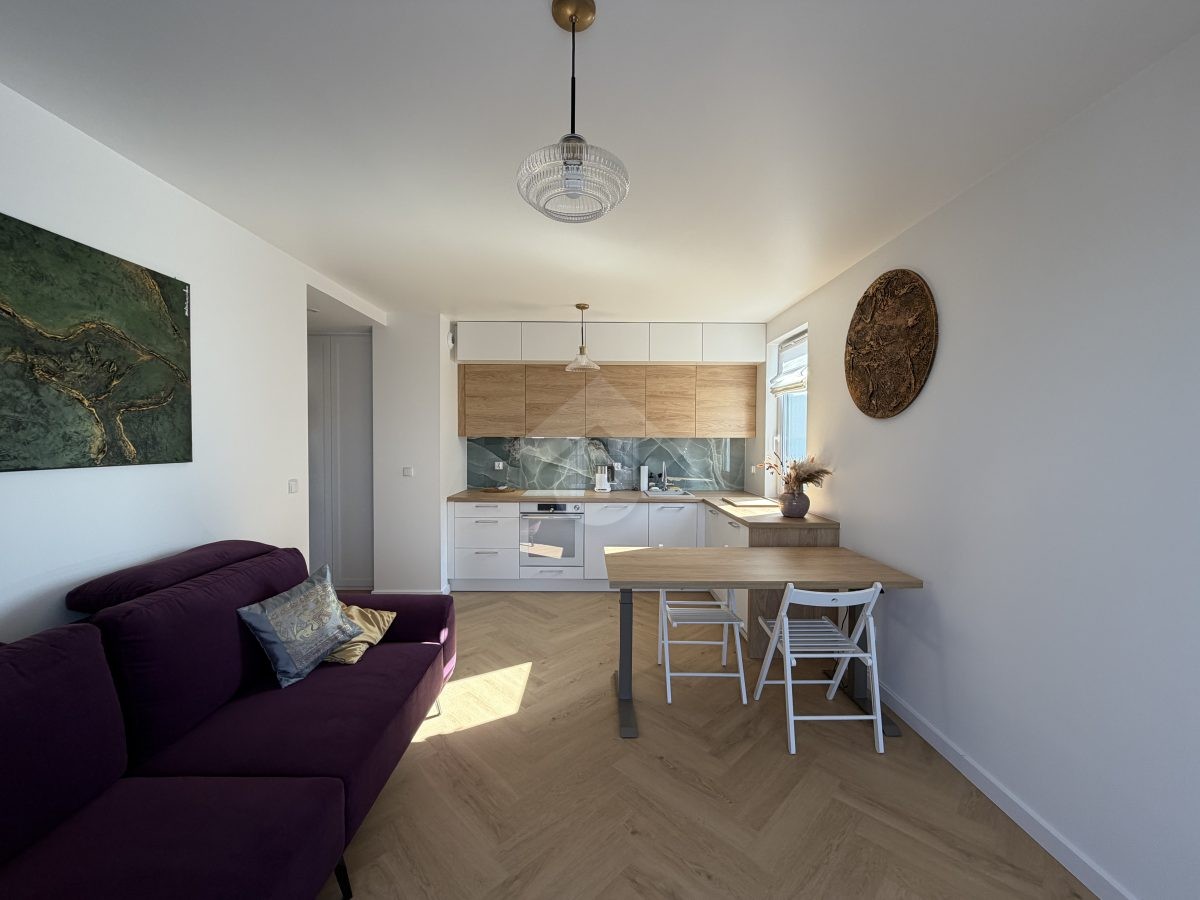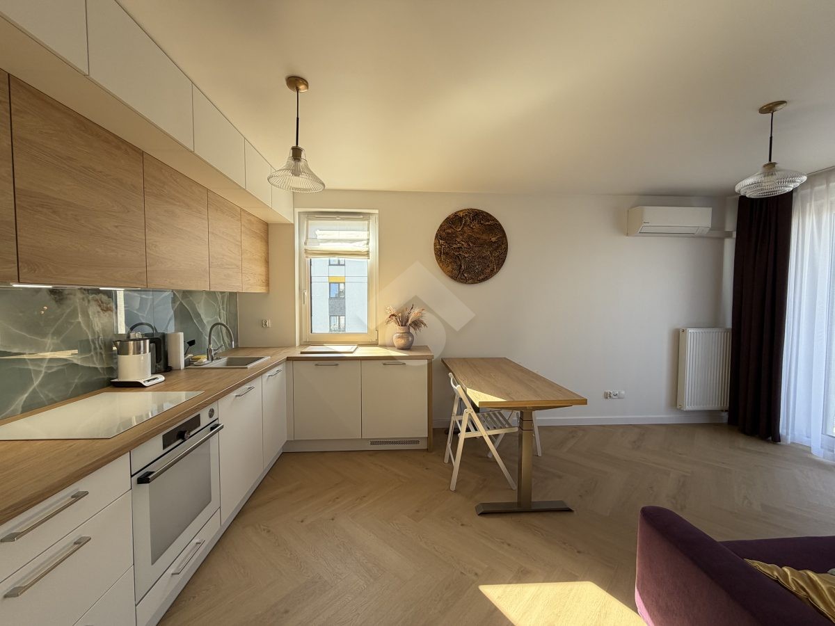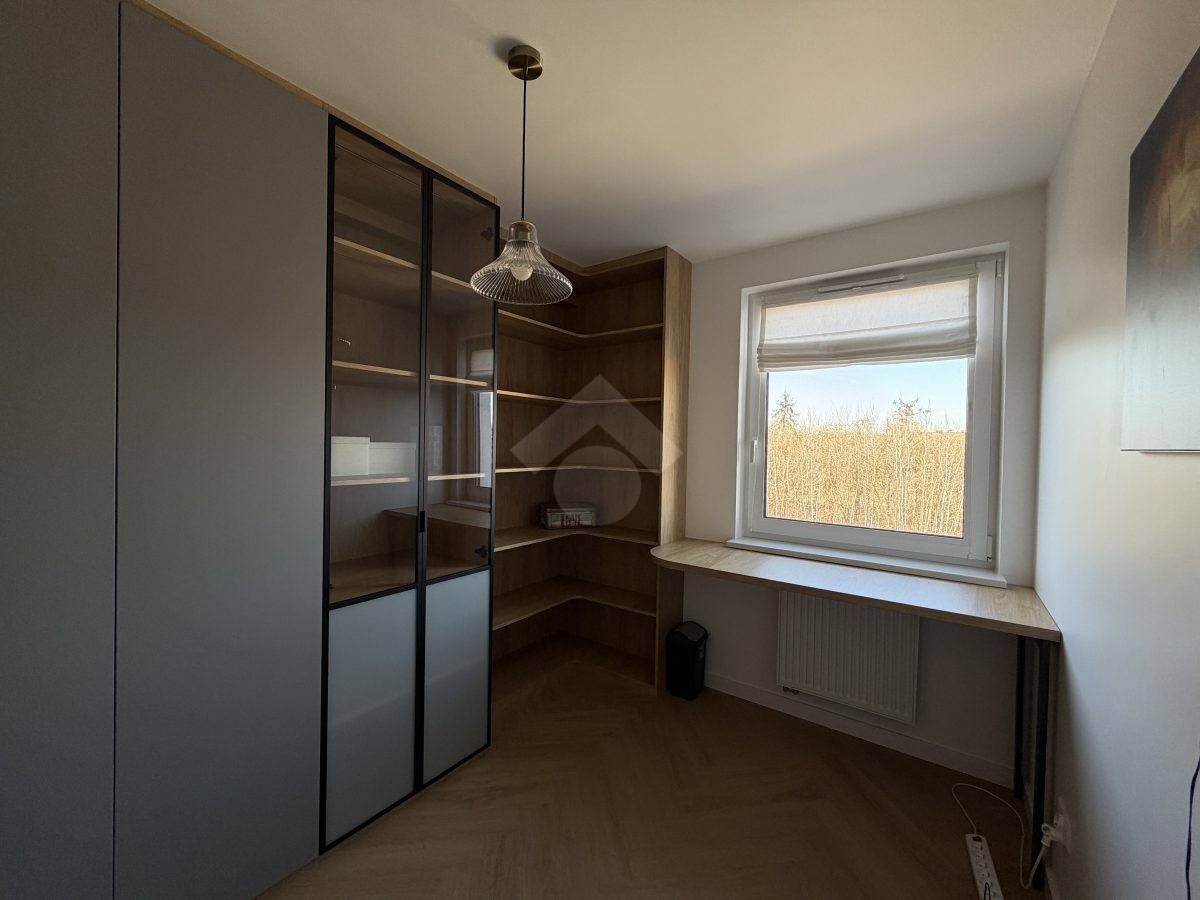 Stan nieruchomości: WYSOKI STANDARD. Mieszkanie zostało wykończone w 2026 r. Kuchnia wyposażona jest w lodówkę, piekarnik, płytę elektryczną, zmywarkę oraz czajnik elektryczny. W łazience znajduje się wanna z funkcją prysznica, pralko-suszarka oraz umywalka z szafką. Sypialnia wyposażona jest w łóżko dwuosobowe, dwie szafki nocne, komodę oraz toaletkę. Pokój biurowy natomiast wyposażony jest w szafę w zabudowie, półki, biurko. W salonie znajduję się elektrycznie rozkładana kanapa oraz elektrycznie podnoszący się stół z krzesłami. Klimatyzacja znajduję się w każdym z pokoi. Przedpokój wyposażony jest w szafy w zabudowie. Ogrzewanie oraz ciepła woda realizowane z sieci miejskiej.