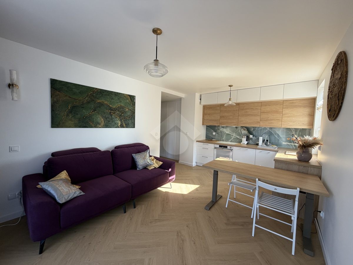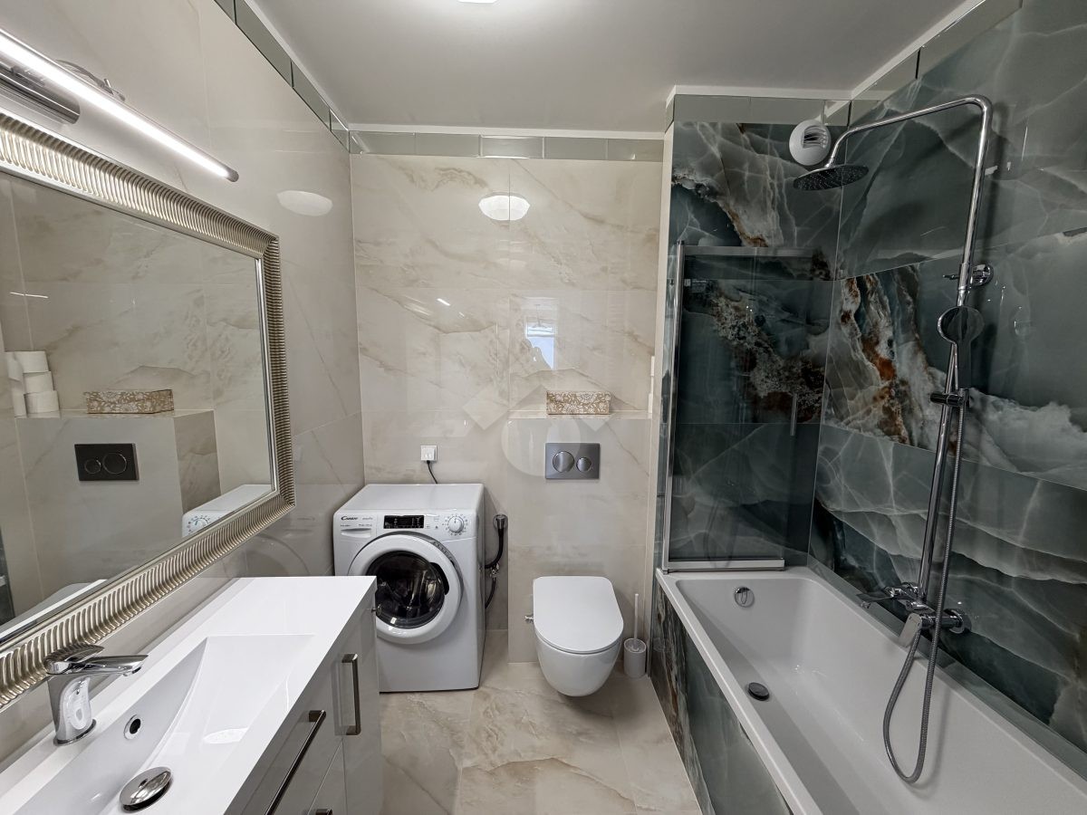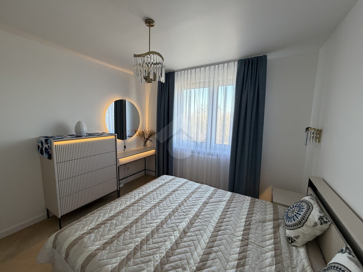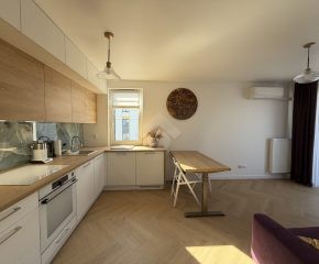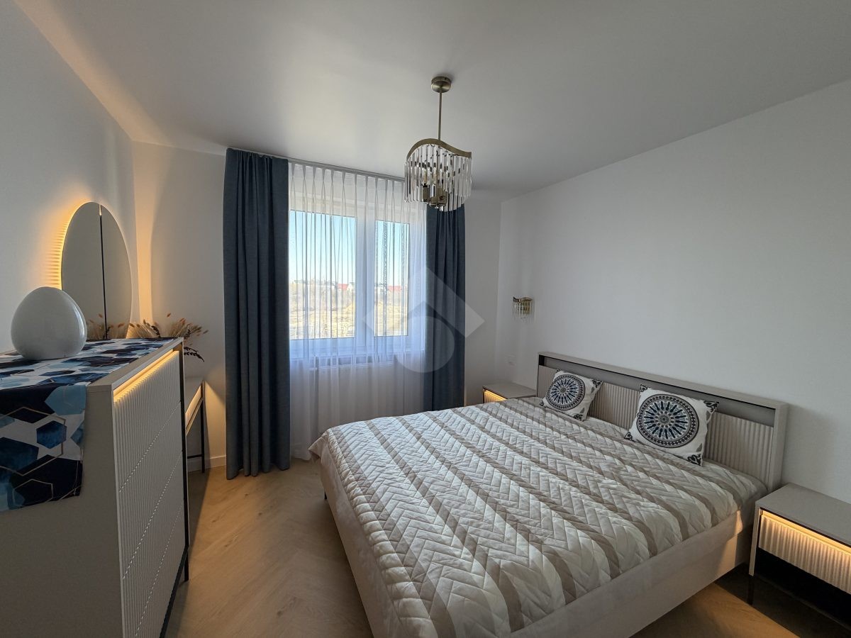 Stan nieruchomości: WYSOKI STANDARD. Mieszkanie zostało wykończone w 2026 r. Kuchnia wyposażona jest w lodówkę, piekarnik, płytę elektryczną, zmywarkę oraz czajnik elektryczny. W łazience znajduje się wanna z funkcją prysznica, pralko-suszarka oraz umywalka z szafką. Sypialnia wyposażona jest w łóżko dwuosobowe, dwie szafki nocne, komodę oraz toaletkę. Pokój biurowy natomiast wyposażony jest w szafę w zabudowie, półki, biurko. W salonie znajduję się elektrycznie rozkładana kanapa oraz elektrycznie podnoszący się stół z krzesłami. Klimatyzacja znajduję się w każdym z pokoi. Przedpokój wyposażony jest w szafy w zabudowie. Ogrzewanie oraz ciepła woda realizowane z sieci miejskiej.