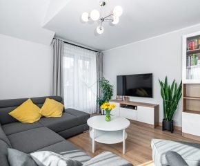 Dwa naziemne miejsca postojowe bezpośrednio przy budynku oraz 2 balkony. Zamknięte osiedle, instalacja domofonowa oraz brama automatyczna. Ogrzewanie podłogowe.