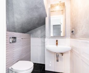 POZIOM I (pow. 42,77m2) – 2 oddzielne sypialnie (z jednej z nich mamy możliwość wyjścia na balkon), łazienka z wanną i prysznicem, hall