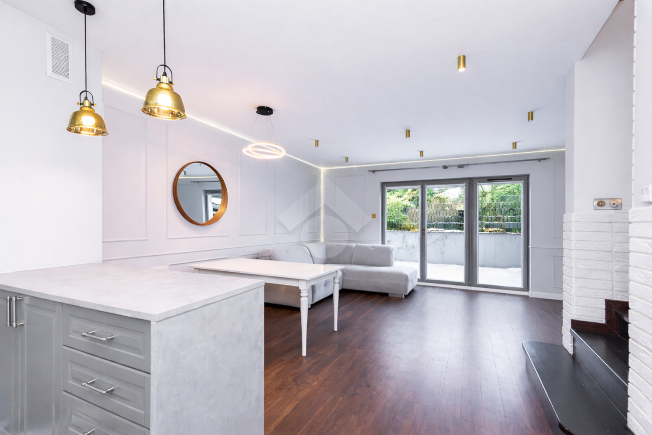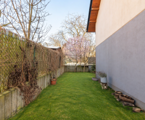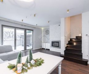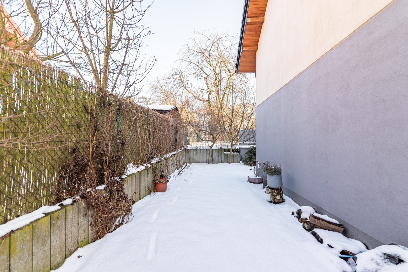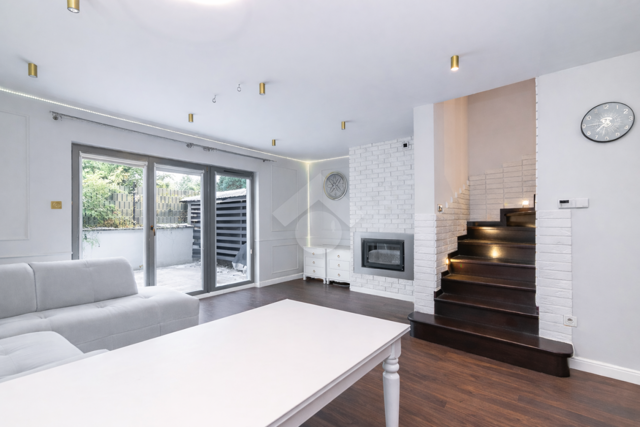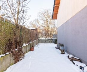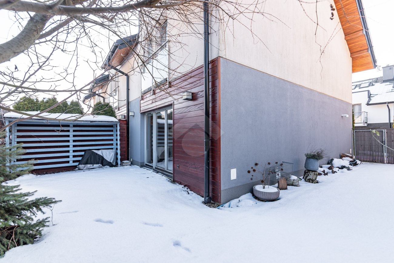 Na terenie działki przypisanej do nieruchomości znajdują się dwa naziemne miejsca postojowe, zagospodarowany ogród oraz domek gospodarczy. Nieruchomość położona jest na zamkniętym osiedlu z bramą automatyczną oraz wspólnym placem zabaw i miejscami parkingowymi dla gości. Największymi zaletami nieruchomości jest zielona, kameralna okolica oraz jej układ i funkcjonalność.