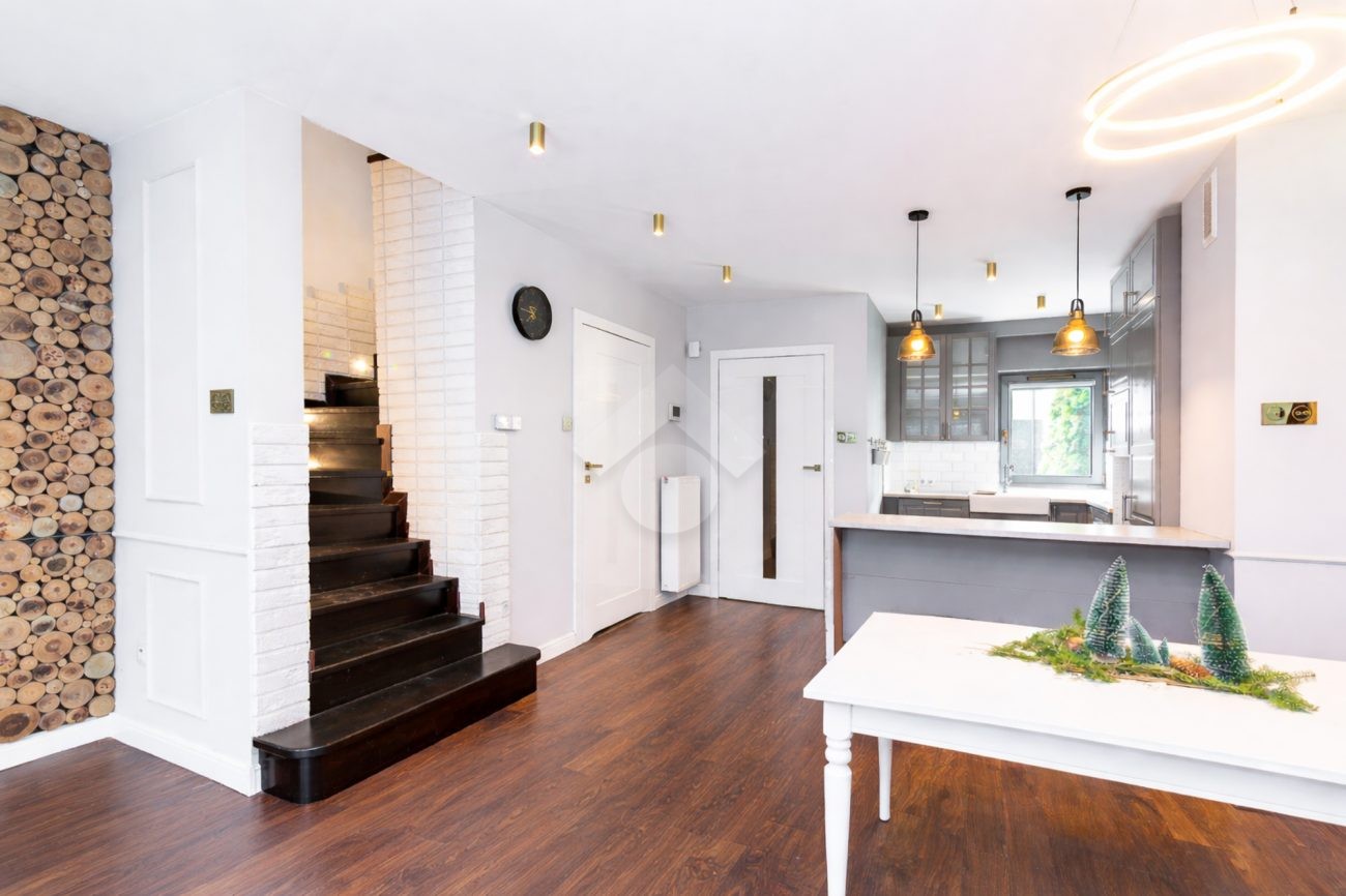 Nieruchomość: Proponujemy Państwu do kupna 3-poziomowy dom o powierzchni całkowitej 122,71 m2, a użytkowej 92,61m2. Jest to nieruchomość stanowiąca skrajną część zabudowy szeregowej, składającej się z trzech odrębnych segmentów, położona na działce o powierzchni 1,91 ar.