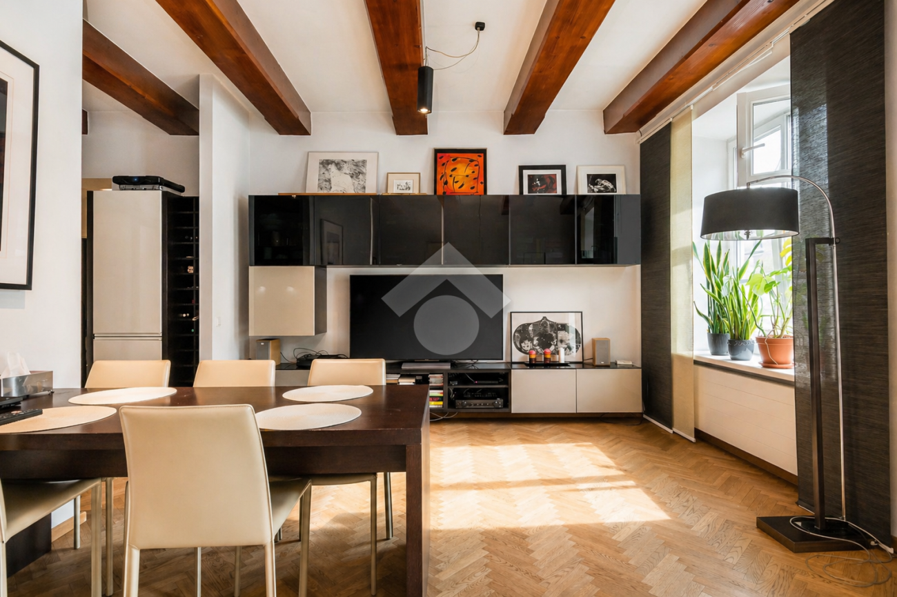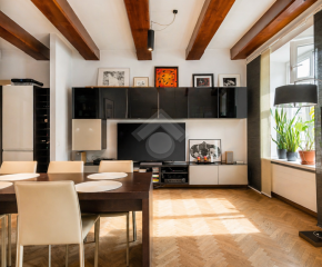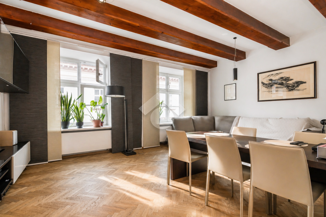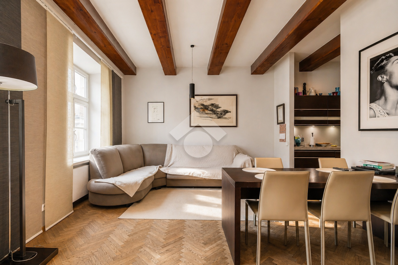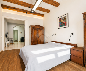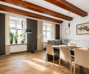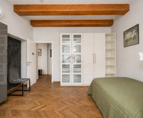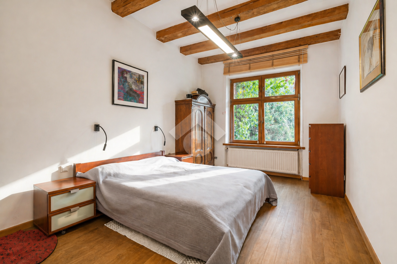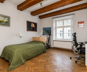 Nieruchomość: Mieszkanie o powierzchni 125m² zlokalizowane na drugim piętrze tradycyjnej kamienicy z XIV wieku. Lokal składa się z dwóch sypialni, pokoju, salonu z aneksem kuchennym, dwóch łazienek z WC oraz hallu. Mieszkanie posiada ekspozycję dwustronną oraz oryginalne drewniane belki stropowe, nadające wnętrzu wyjątkowego, historycznego charakteru. Ogrzewanie gazowe.