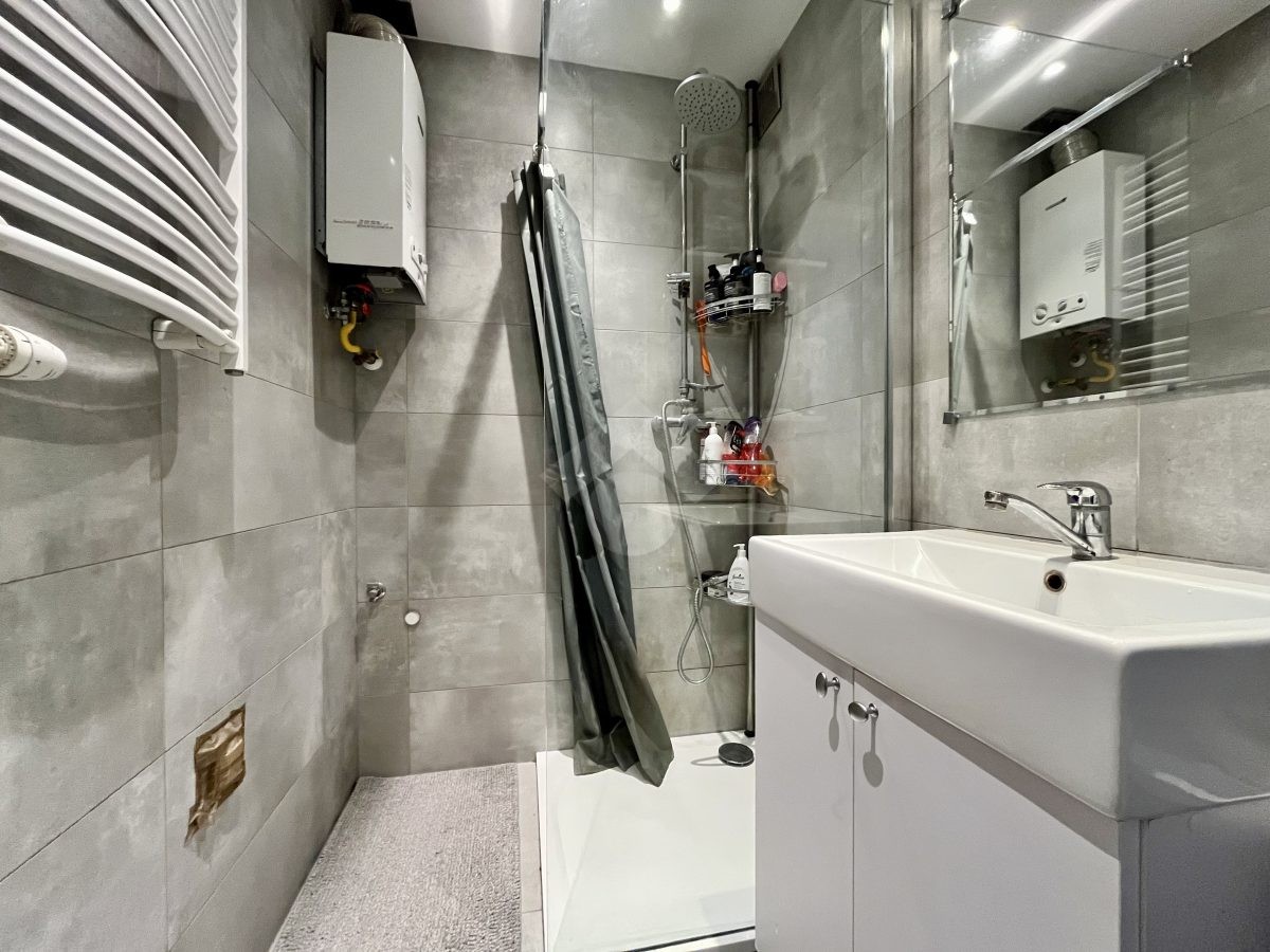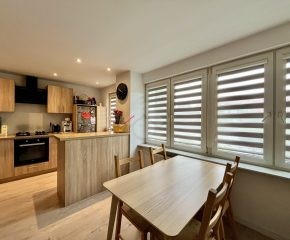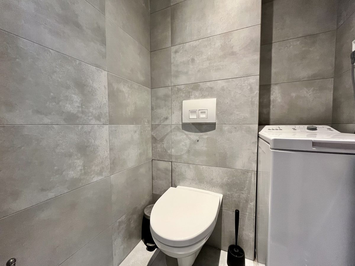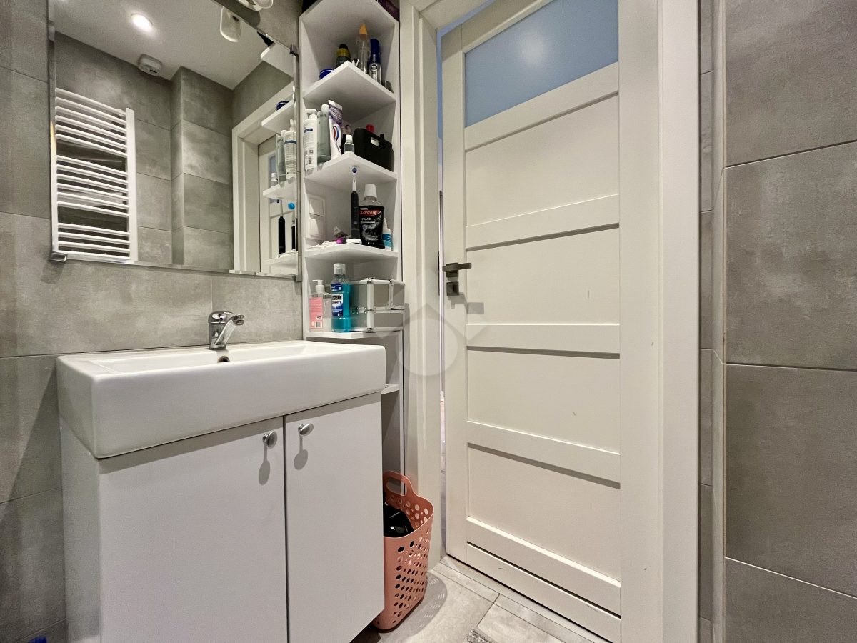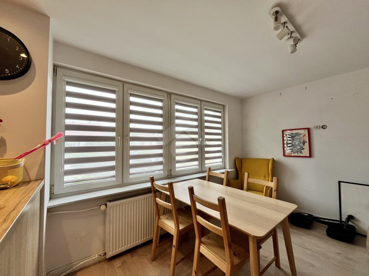 Stan nieruchomości: Dobry. Lokal posiada dwustronną ekspozycję, co zapewnia dobre doświetlenie i nasłonecznienie. Ogrzewanie mieszkania realizowane z sieci miejskiej. Salon z aneksem kuchennym wyposażony jest w piekarnik, płytę gazową, lodówko-zamrażarkę, okap oraz stół jadalniany. W łazience i WC znajduje się m.in. kabina prysznicowa i pralka.