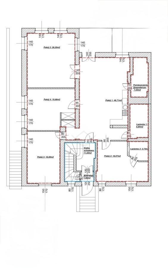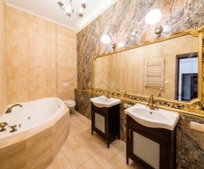 Stan mieszkania: Mieszkanie w stanie bardzo dobrym. Nieruchomość kilka lat temu przeszło gruntowny remont. Część kuchenna wyposażona została w zabudowę na wymiar wraz ze sprzętami AGD oraz użytkową wyspę. Pokoje częściowo wyposażone. W pierwszej łazience znajduje się wanna, dwie umywalki oraz WC. W drugiej łazience znajduje się prysznic, umywalka oraz WC.