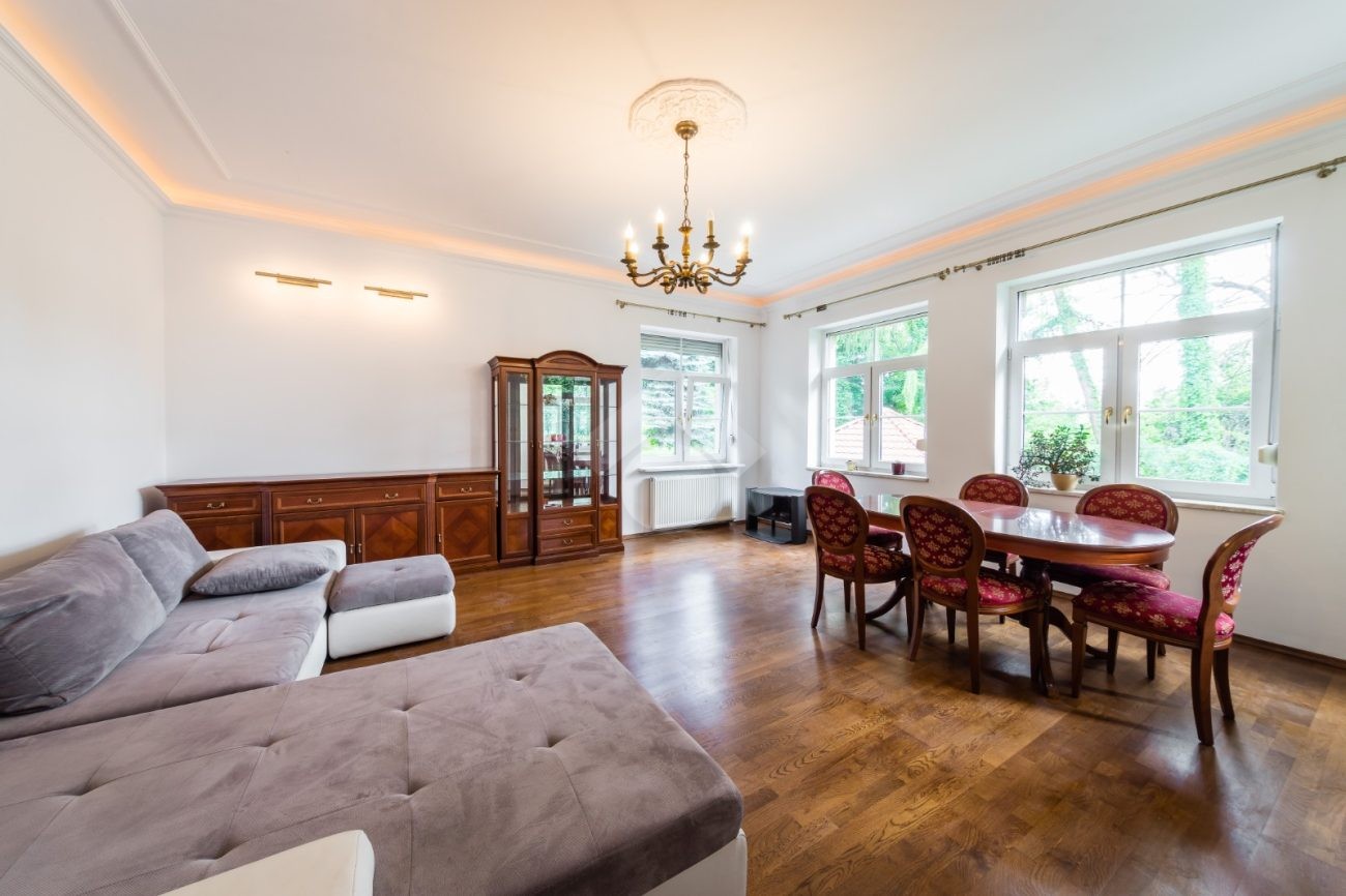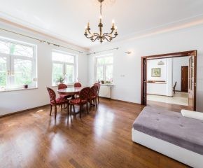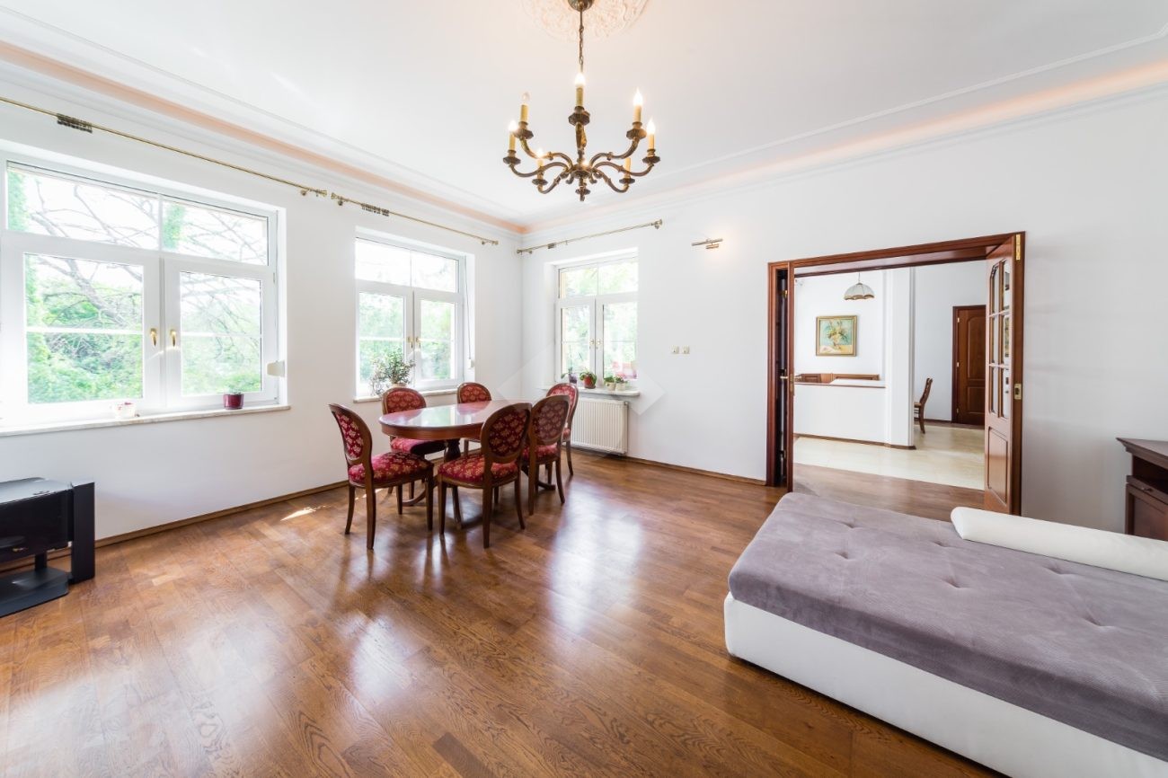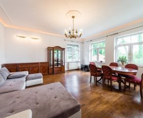 Nieruchomość: Przedmiotem ogłoszenia jest wynajem przestronnego 5 – pokojowego mieszkania o powierzchni 150 m2, znajdującego się na wysokim parterze wolnostojącego, ogrodzonego budynku w stylu willowym. W budynku znajdują się tylko 3 mieszkania co nadaje nieruchomości kameralny charakter.