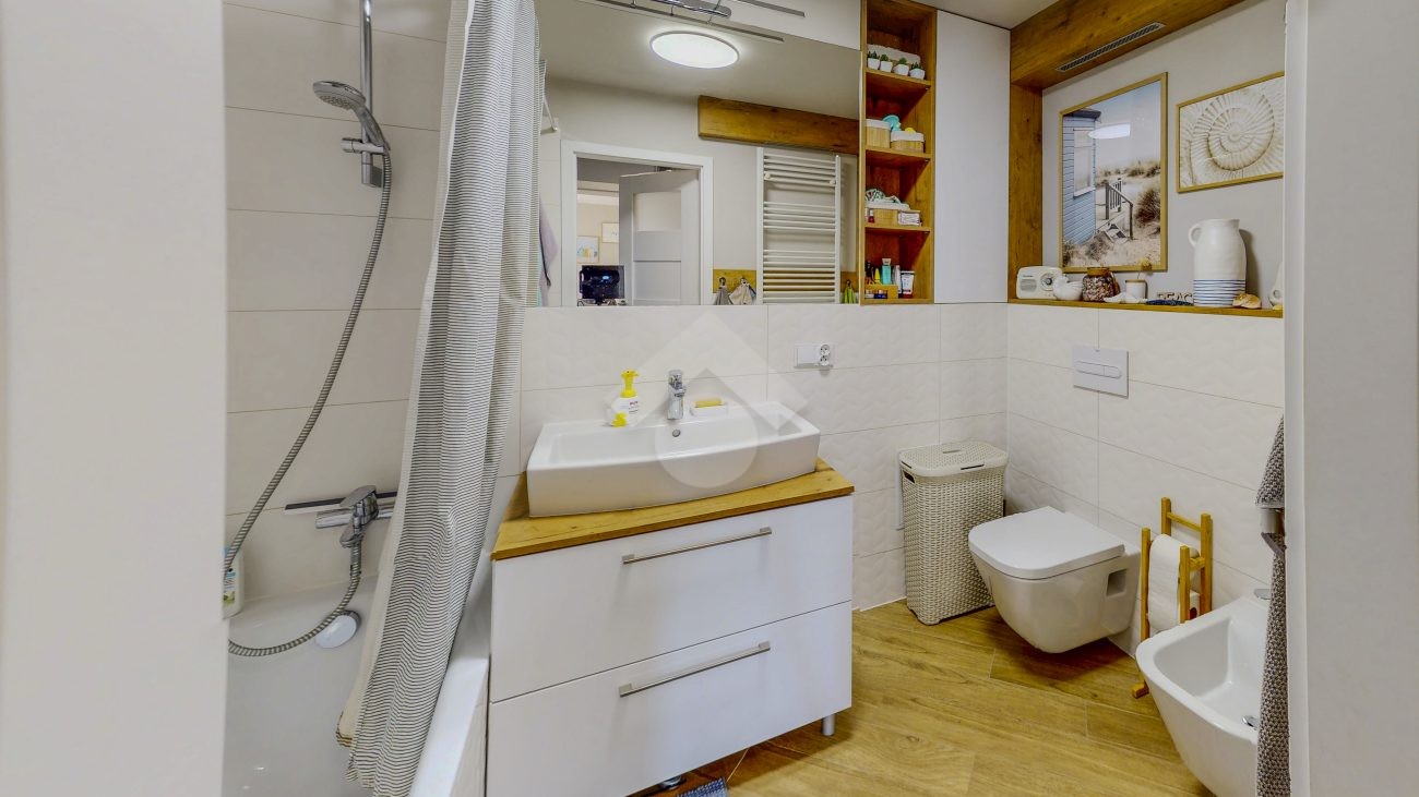 Dodatkowo do mieszkania przynależy duża piwnica (6,57 m2) oraz właściciele mają indywidualny dostęp do części strychu znajdującego się nad mieszkaniem.