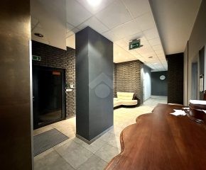 Do lokali prowadzi zadbana, przestronna klatka schodowa wykończona w wysokim standardzie oraz winda wychodząca bezpośrednio na wejście do biura.