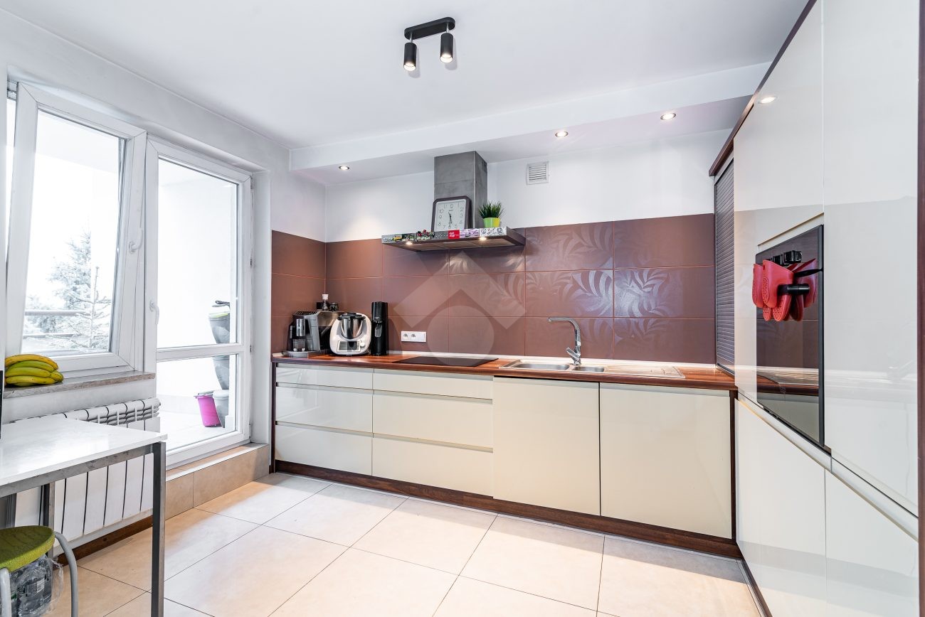 Dwustronna ekspozycja wschód–zachód sprawia, że wnętrze jest naturalnie doświetlone o każdej porze dnia. Klimatyzacja podnosi komfort w sezonie letnim. Kuchnia w zabudowie z kompletem AGD (piekarnik, płyta indukcyjna, okap, zmywarka, lodówka z zamrażarką) pozwala od razu korzystać z pełnej funkcjonalności. Dodatkowo do mieszkania przynależy piwnica o powierzchni 8,1 m² która stanowi dodatkową przestrzeń do przechowywania.