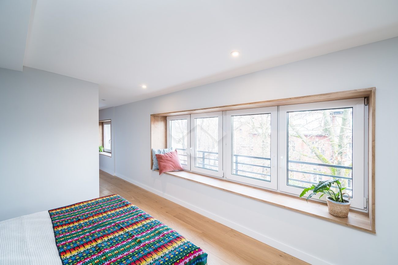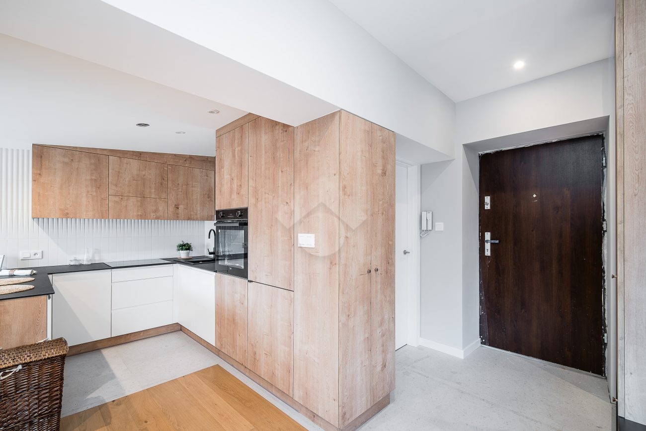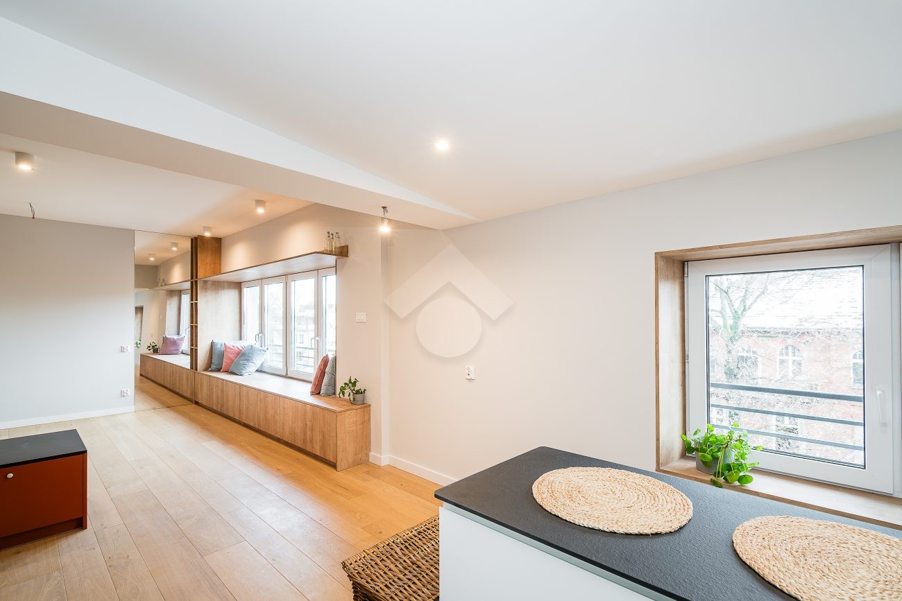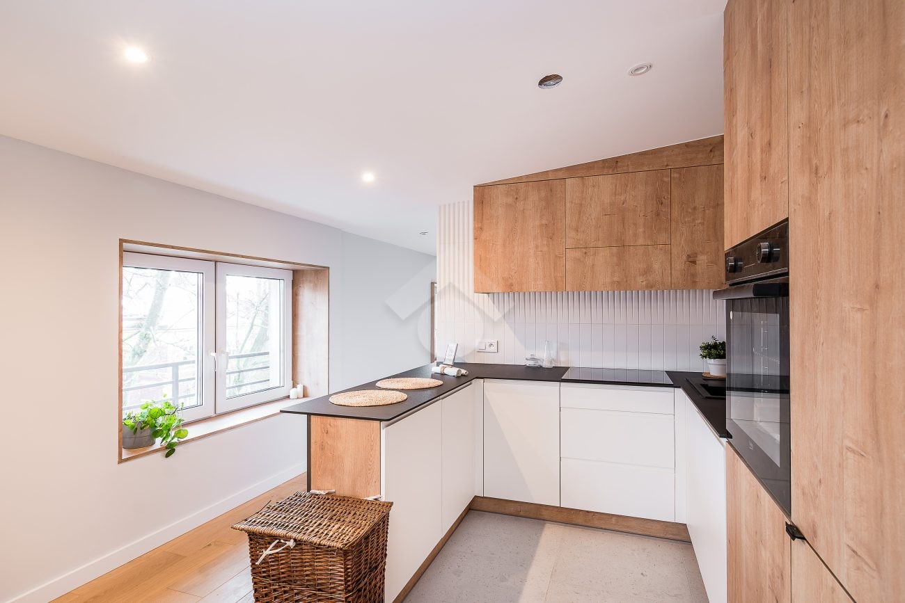 Condition of the premises: Very good, renovated this year. The fitted kitchen was custom-made by a carpenter and is equipped with an induction hob, oven, refrigerator and dishwasher. The floors in the rooms are wooden, while the bathroom, laundry room and hall are tiled. The hall has a large wardrobe with a mirror and access to the laundry room, the bedroom has a large bed, and the living room has space for your own arrangement. The bedroom, kitchen and living room have panoramic windows overlooking beautiful historic tenement houses. The bathroom has a walk-in shower. The apartment is also very bright thanks to the large number of windows. The premises are heated by a dual-function gas heater.